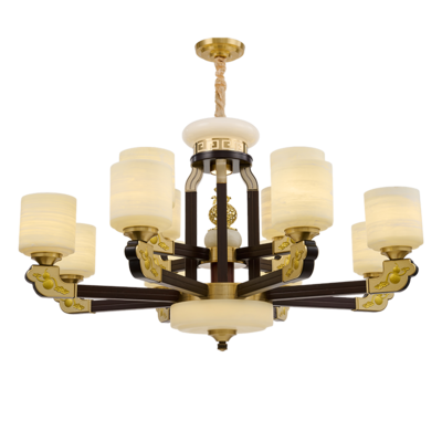 新中式铜合金+木+仿玉罩灯体 客厅餐厅书房卧室简约吊灯3366