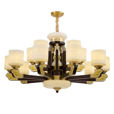 新中式铜合金+木+仿玉罩灯体 客厅餐厅书房卧室简约吊灯3366