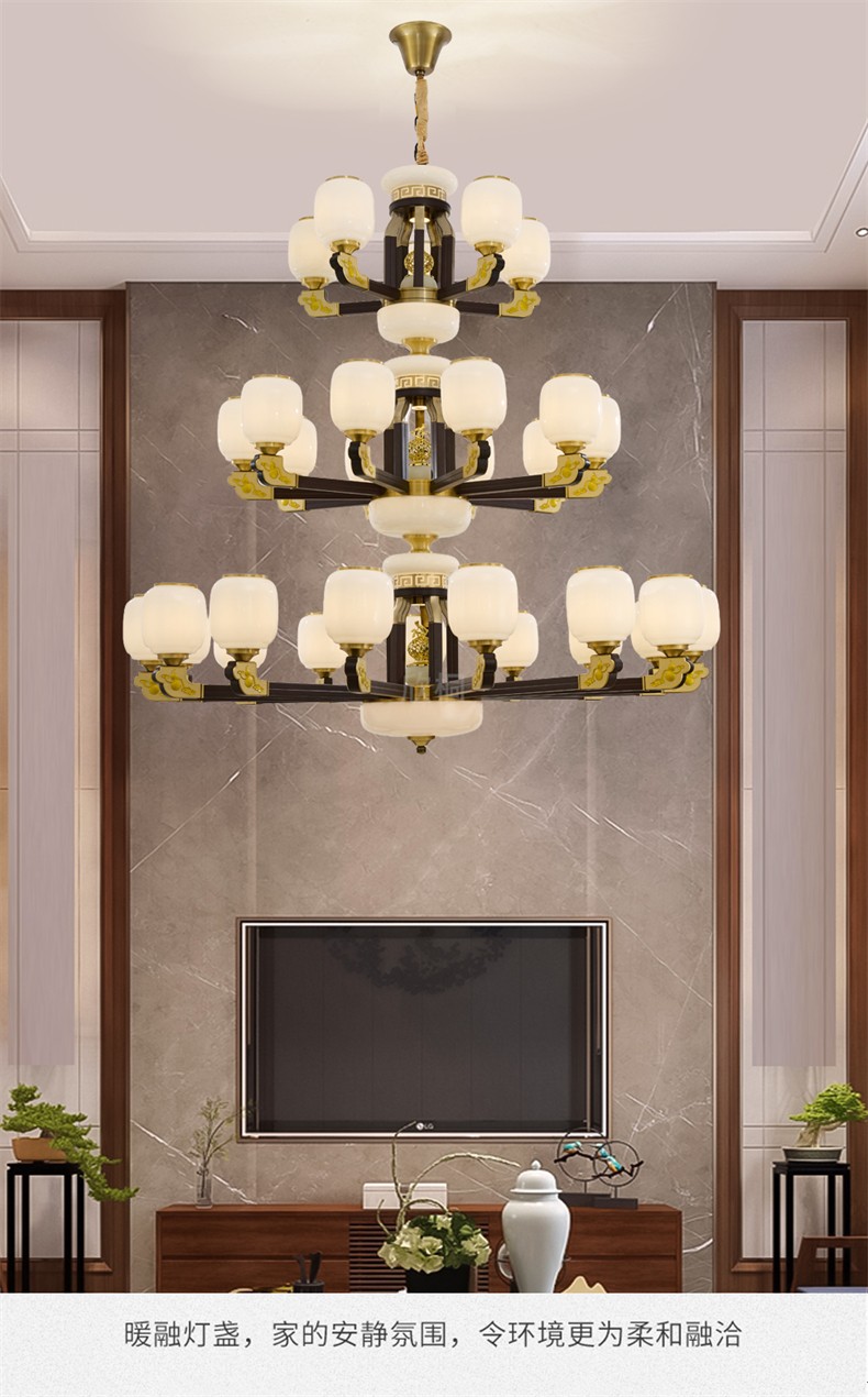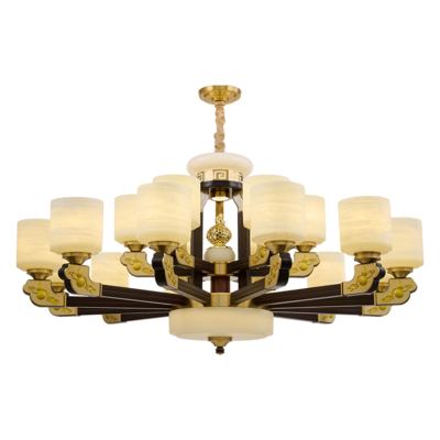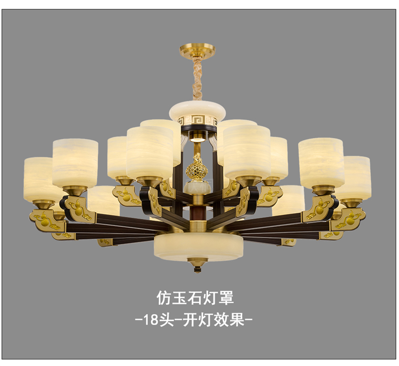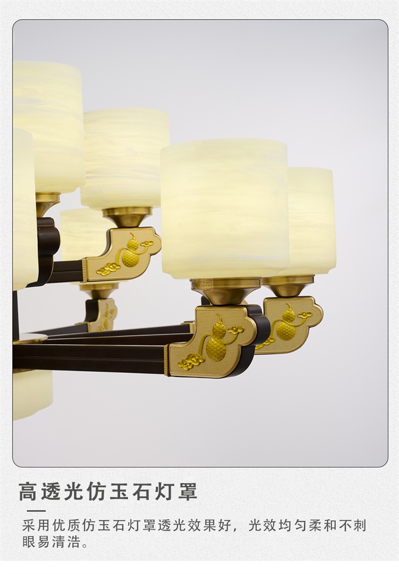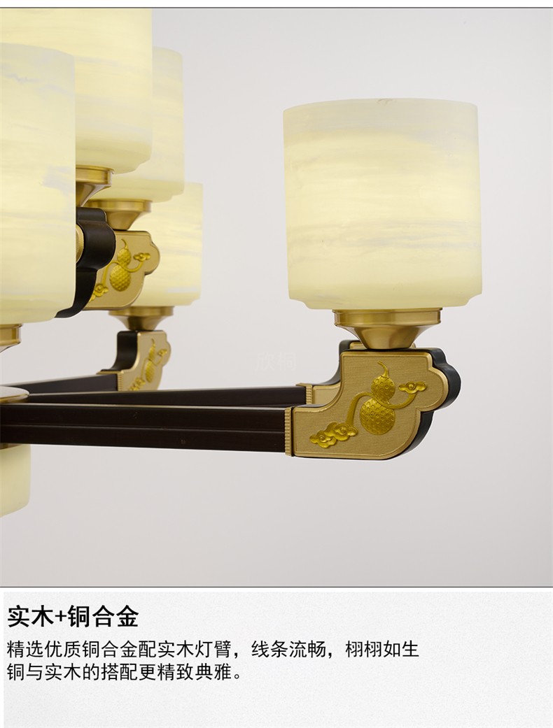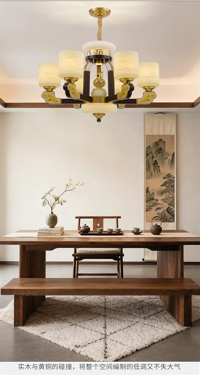 新中式铜合金+木+仿玉罩灯体 客厅餐厅书房卧室简约吊灯3366