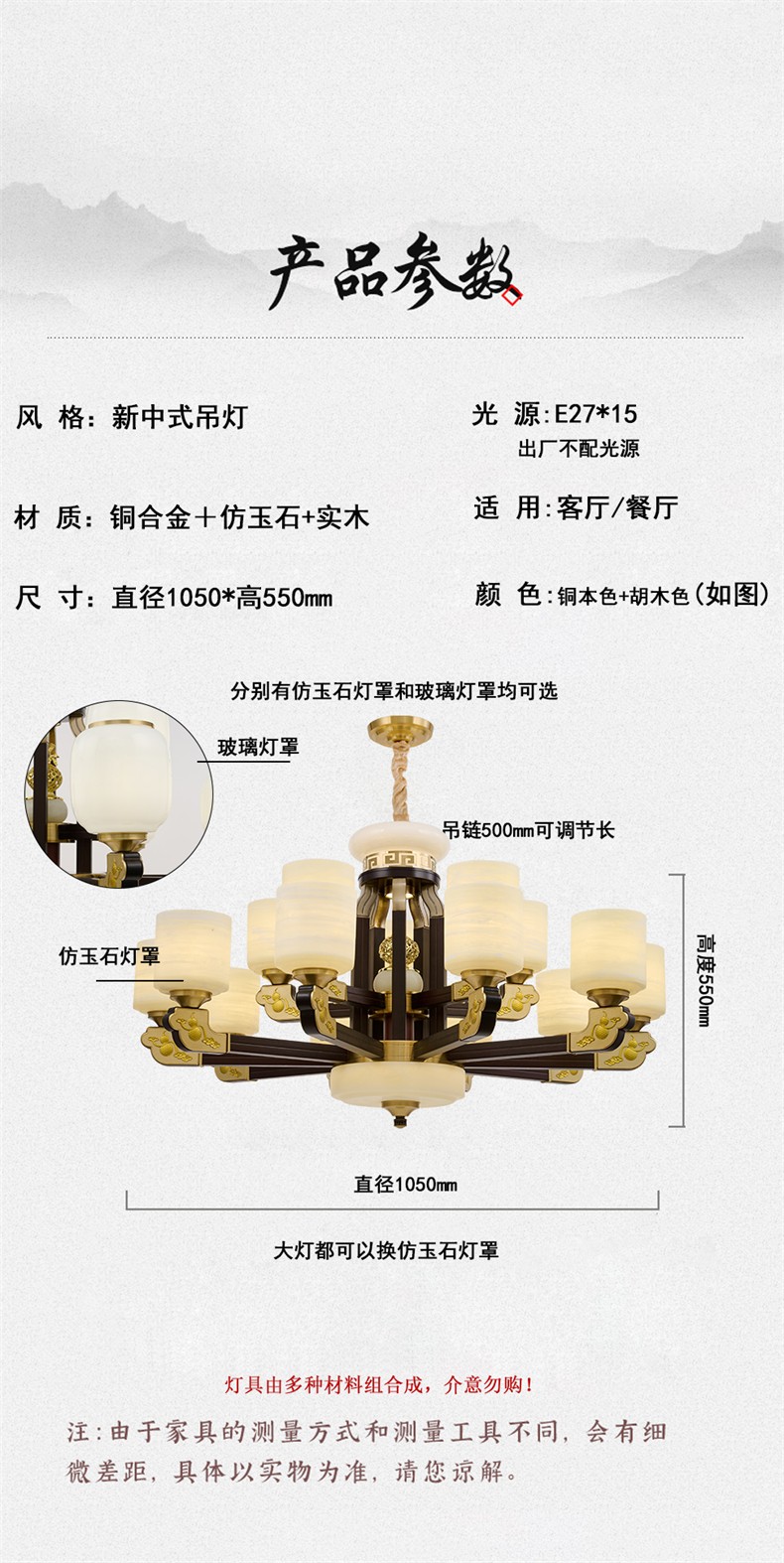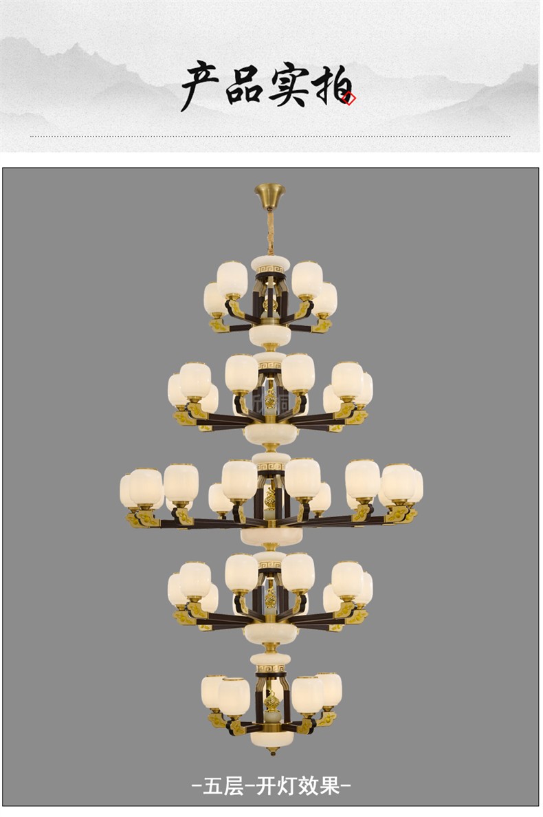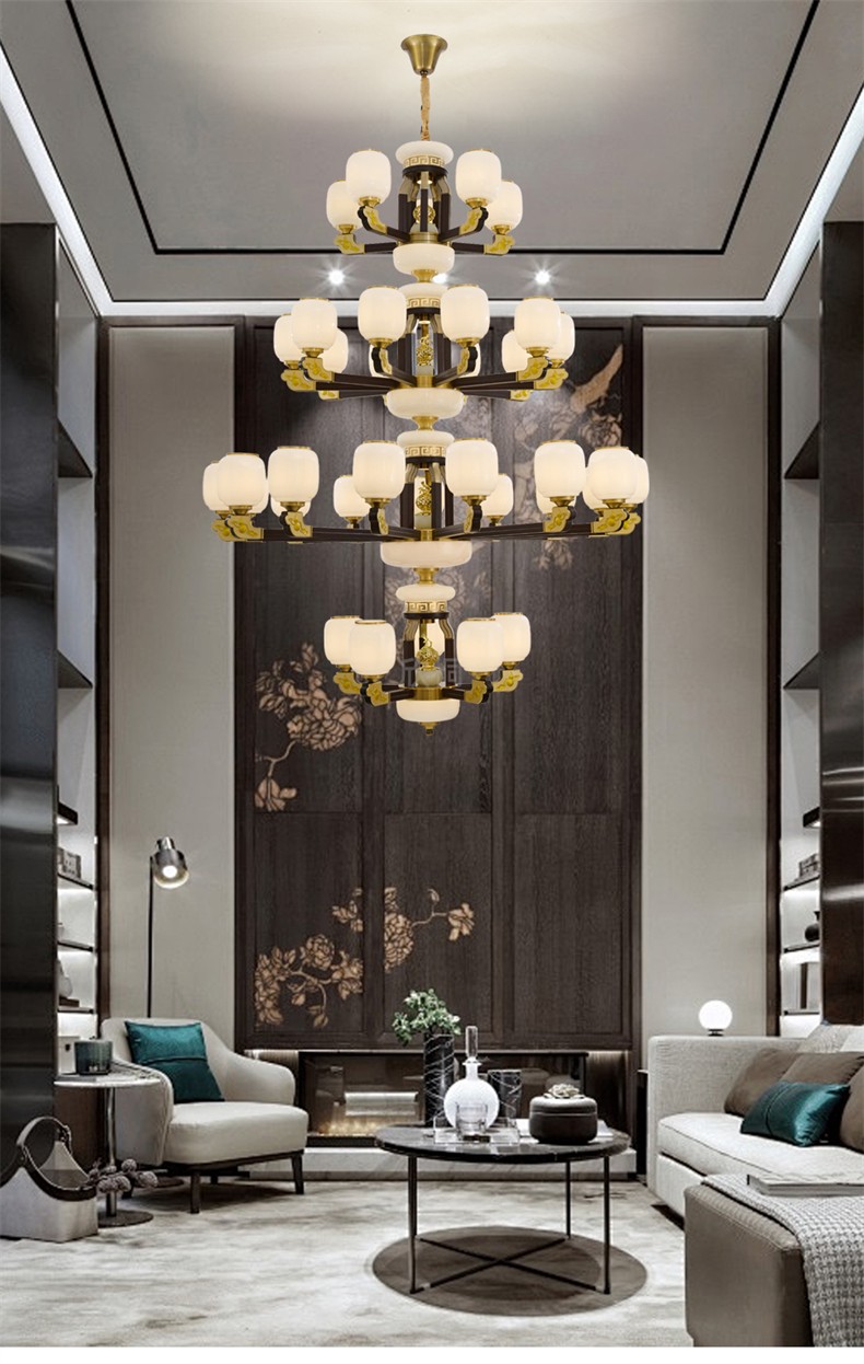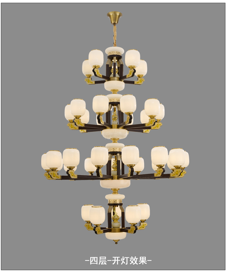 新中式铜合金+木+仿玉罩灯体 客厅餐厅书房卧室简约吊灯3366