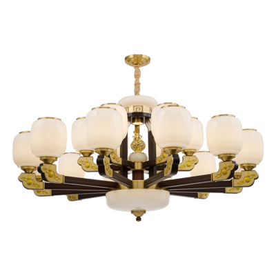 新中式铜合金+木+玻璃罩灯体 客厅餐厅书房卧室简约吊灯3366
