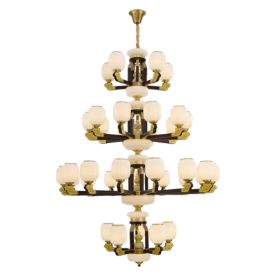 新中式铜合金+木+玻璃罩灯体 客厅餐厅书房卧室简约吊灯3366