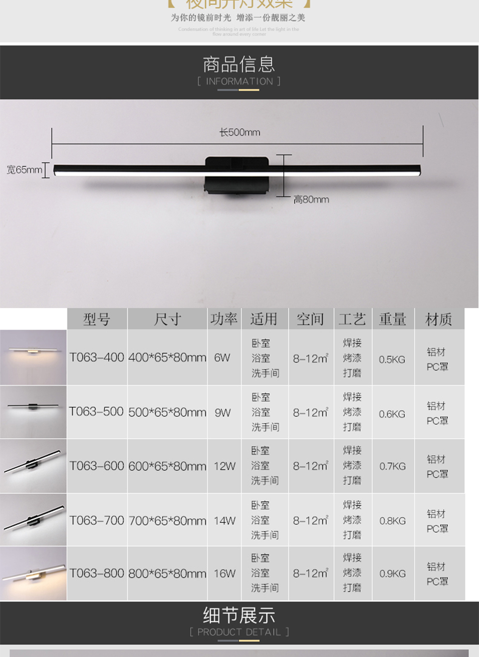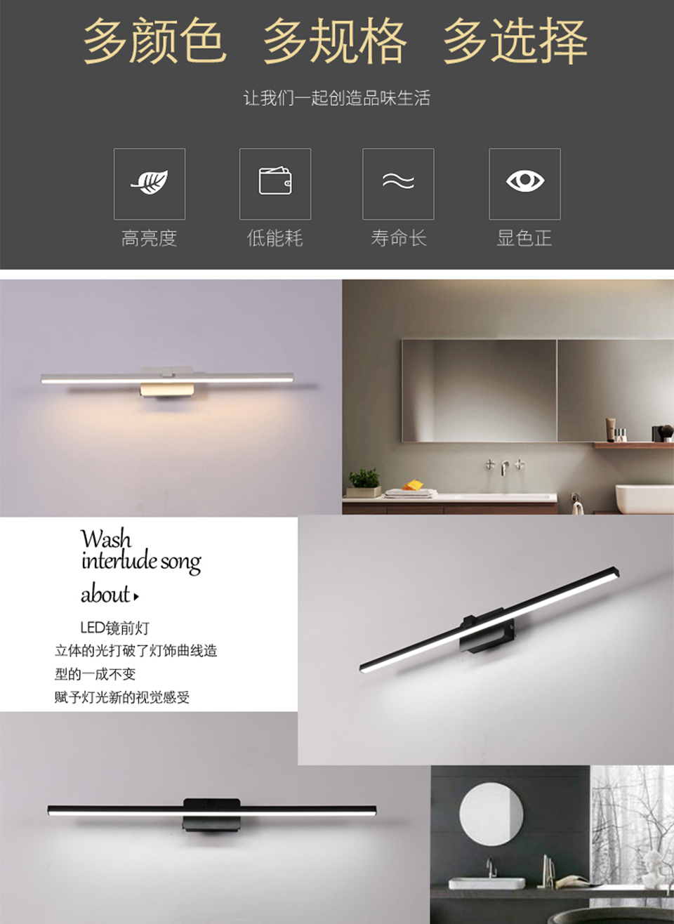 简约现代LED卫生间化妆台镜前灯T063