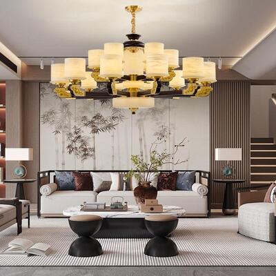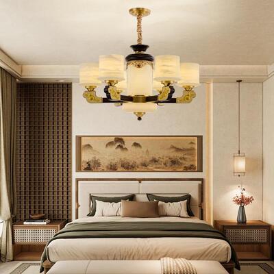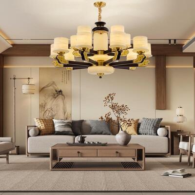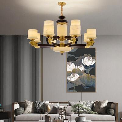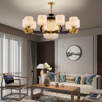 销量: 0 新中式铜合金+木+仿玉罩灯体 客...