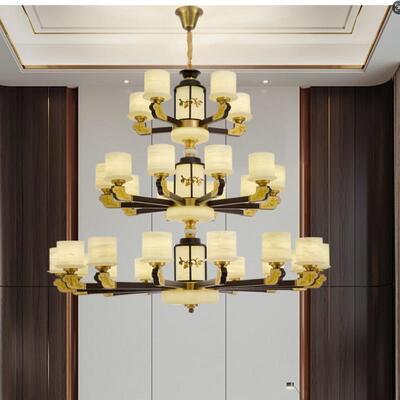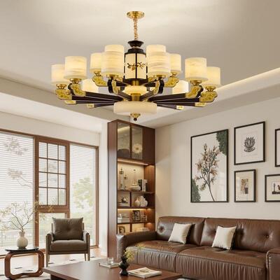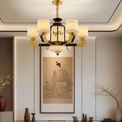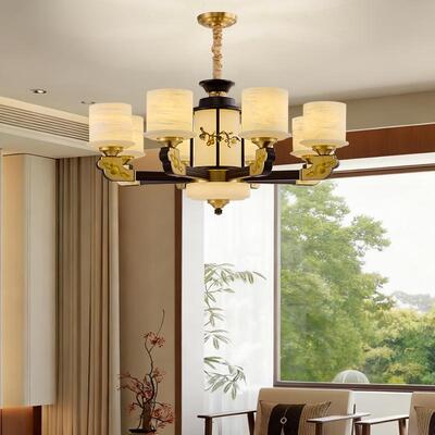 新中式铜合金+木+仿玉罩灯体 客厅餐厅书房卧室简约吊灯1166