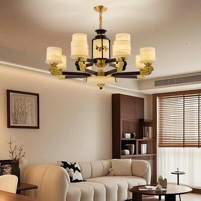 首页 > 家居照明馆 > 中式.新中式 > 新中式铜合金+木+仿玉罩灯体 客厅餐厅书房卧室简约吊灯1166