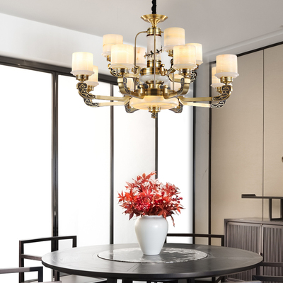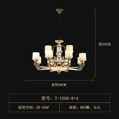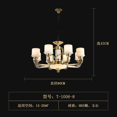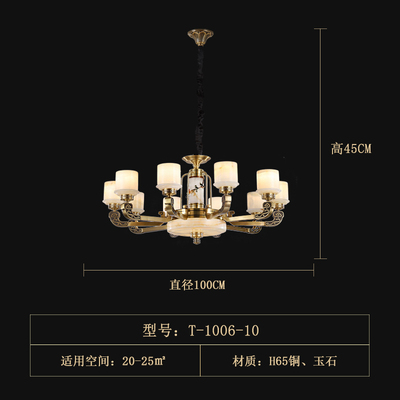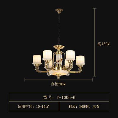 新中式全铜玉石玻璃灯罩吊灯T1006B