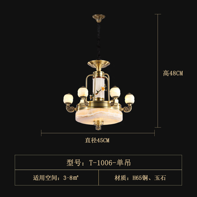新中式全铜玉石客厅餐厅书房吊灯T1006
