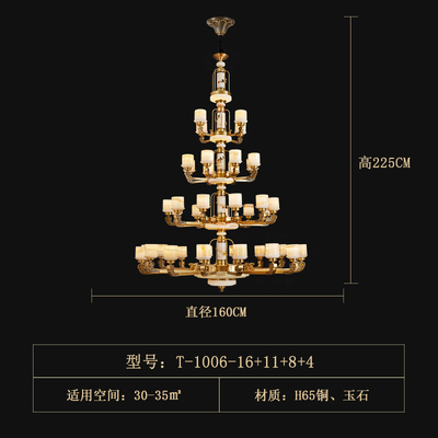 新中式全铜玉石客厅餐厅复式楼大吊灯T1006
