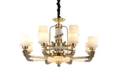 新中式全铜玉石玻璃灯罩吊灯T1006B