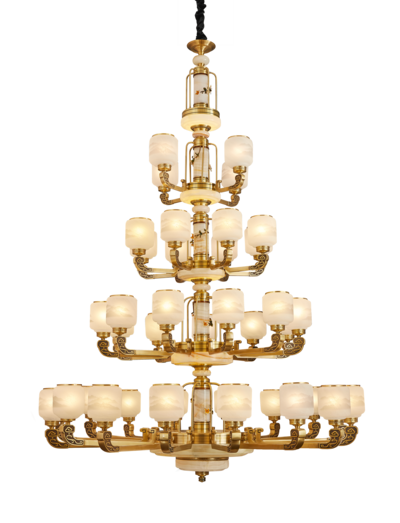 新中式全铜玉石玻璃灯罩酒店复式楼大吊灯T1006B