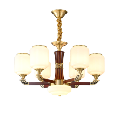 新中式铜配实木灯体封口防尘玻璃灯罩吊灯8888