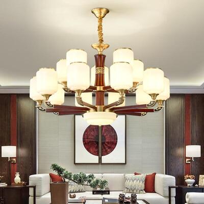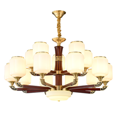 新中式铜配实木灯体封口防尘玻璃灯罩吊灯8888