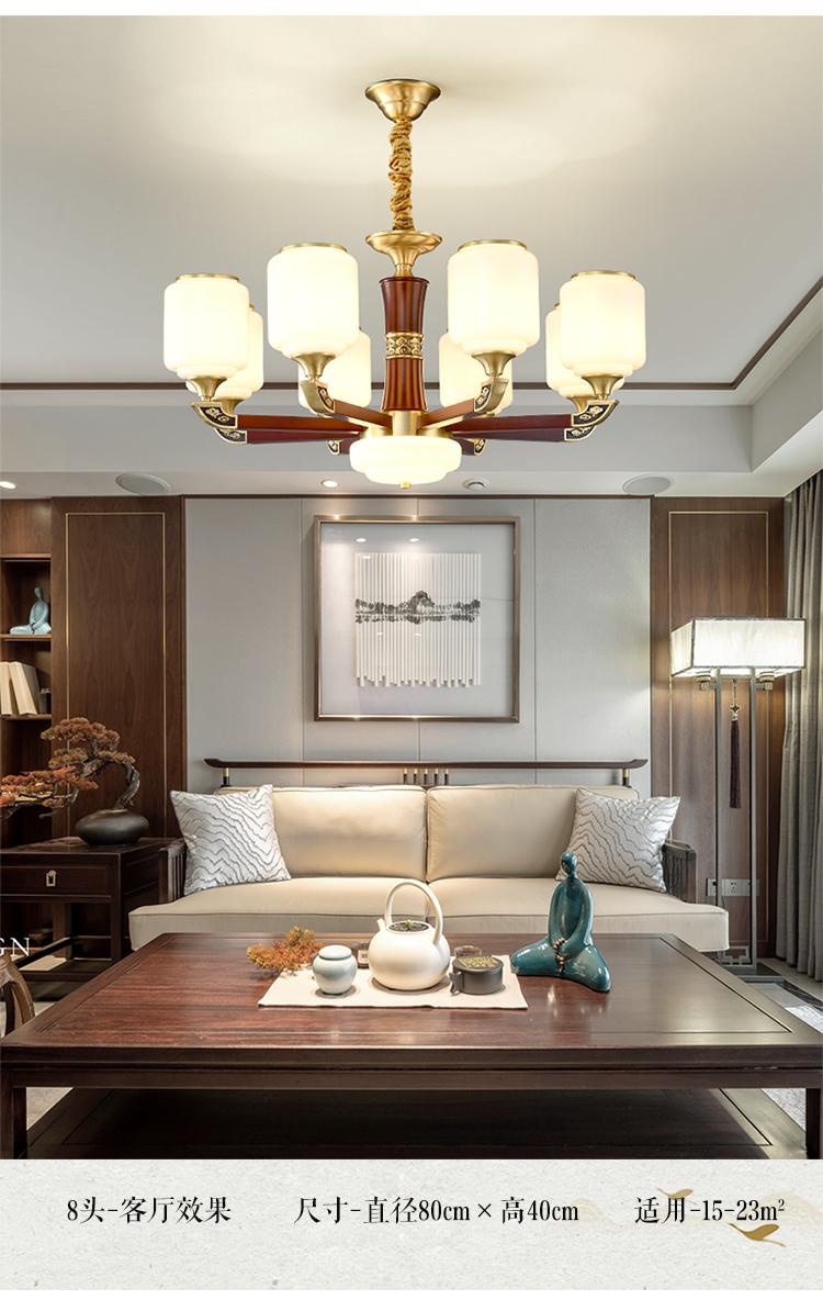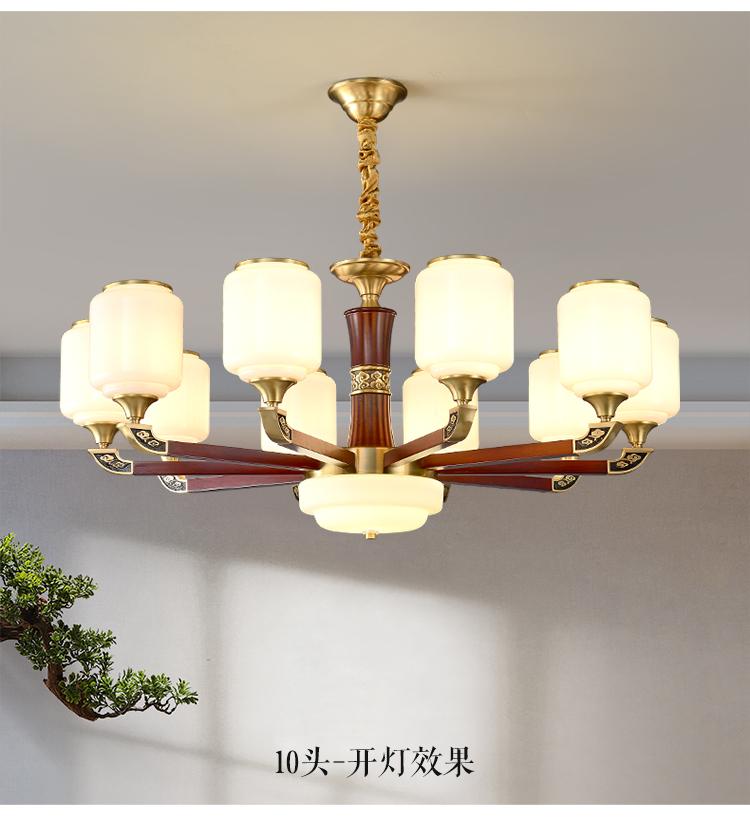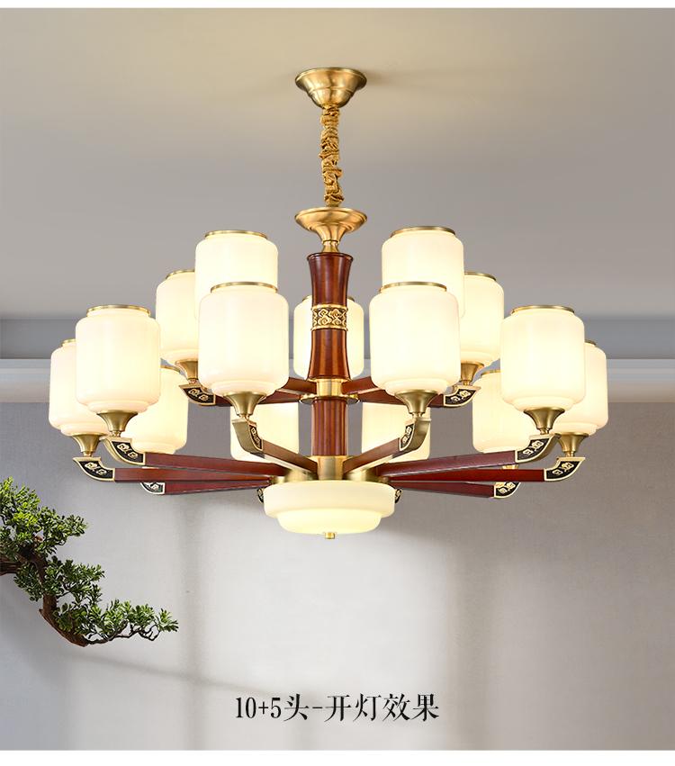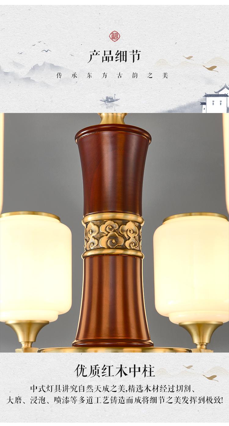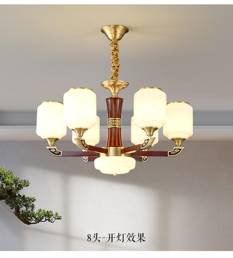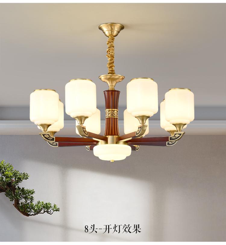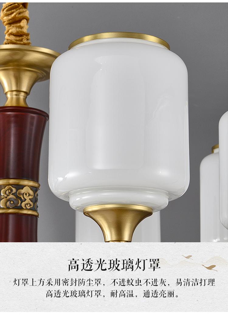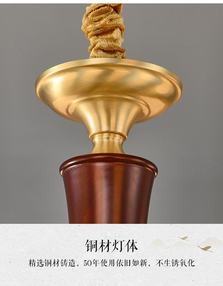新中式铜配实木灯体封口防尘玻璃灯罩吊灯8888