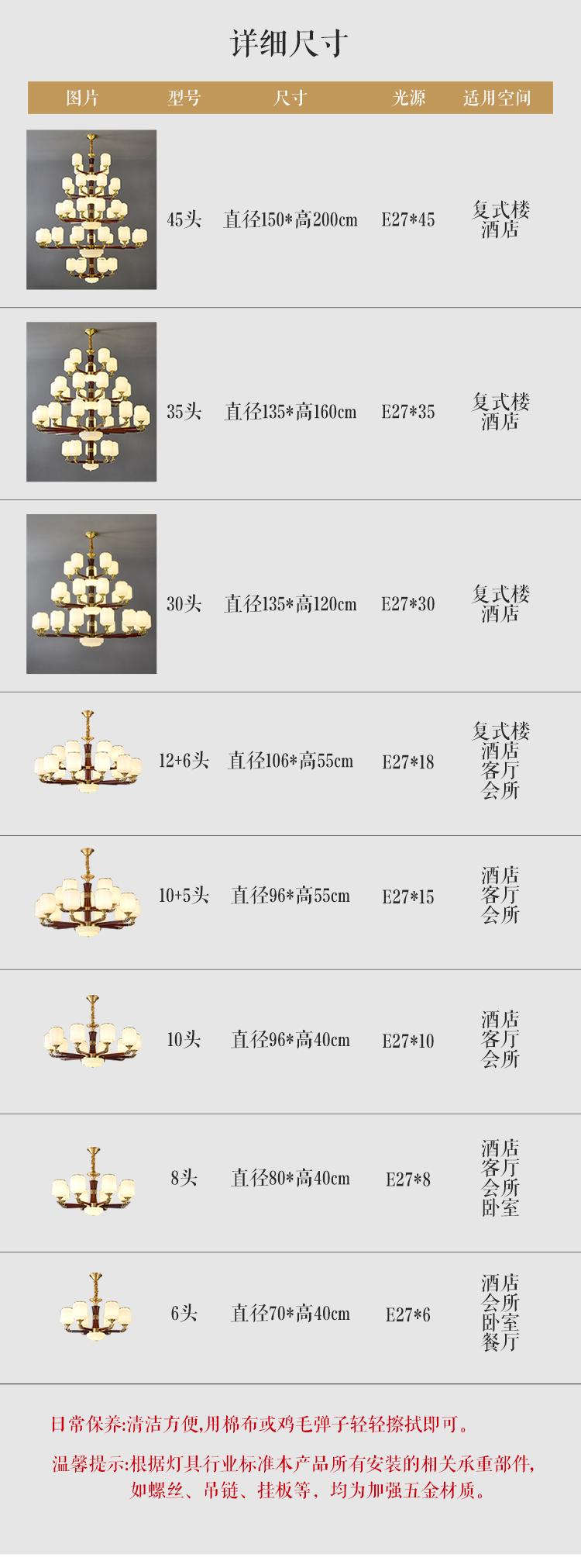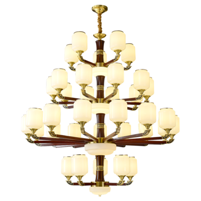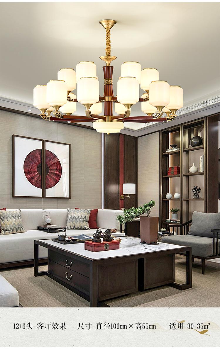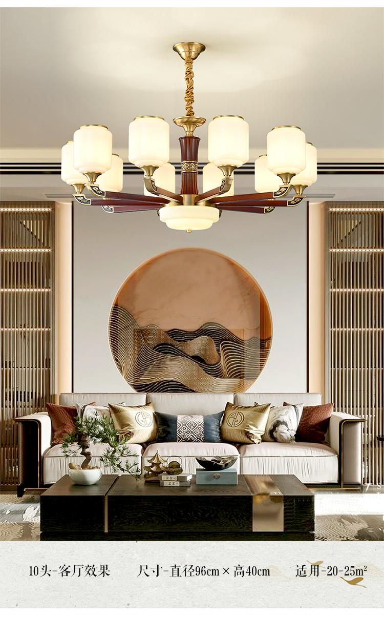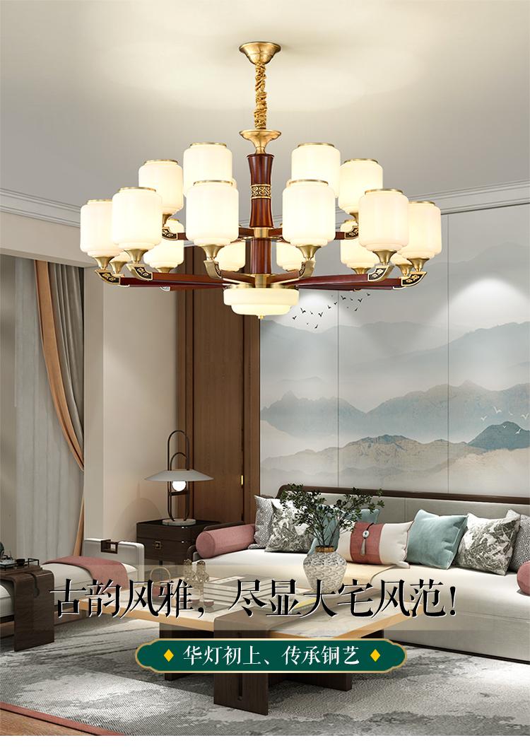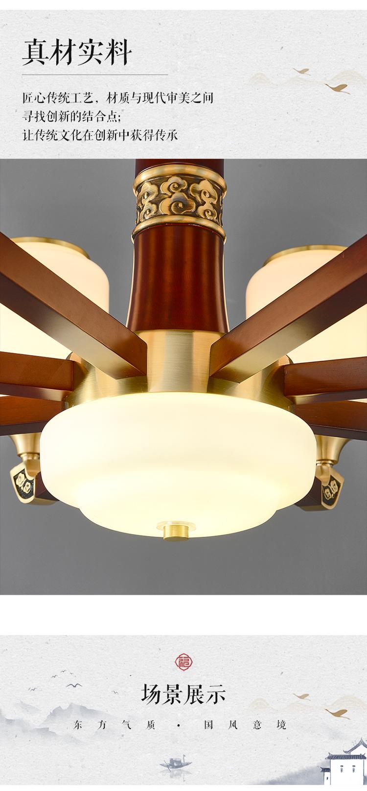 新中式铜配实木灯体封口防尘玻璃灯罩吊灯8888