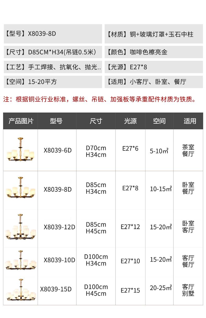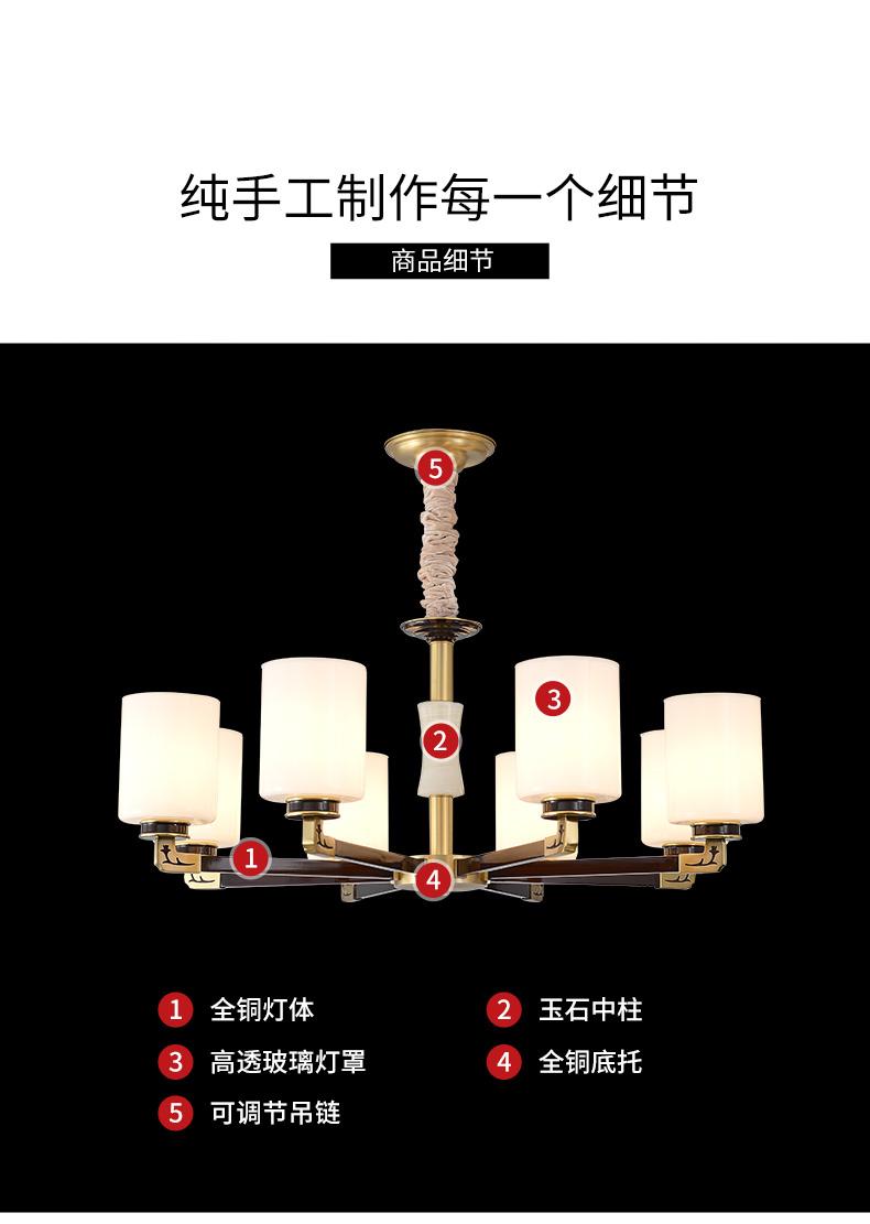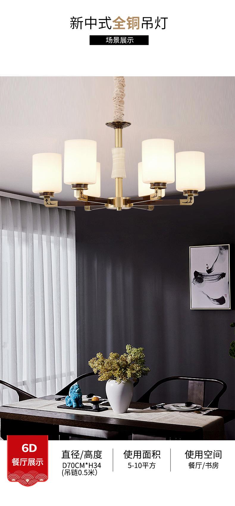 新中式全铜客厅餐厅书房卧室简约吊灯X8039-6D
