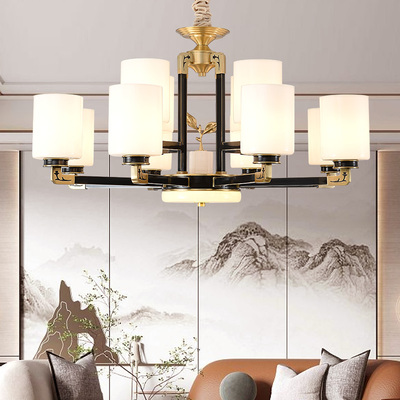 新中式全铜客厅餐厅书房卧室简约吊灯X8038-8+4D