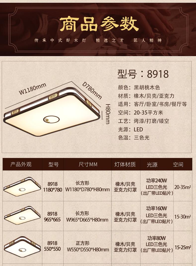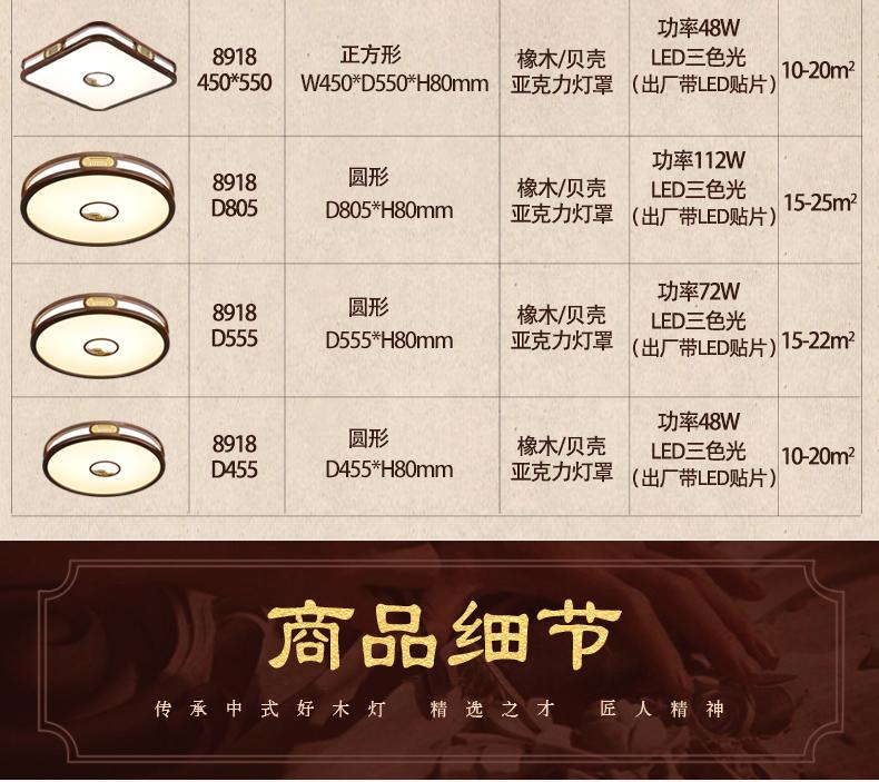 中式精美实木LED橡木吸顶灯8918