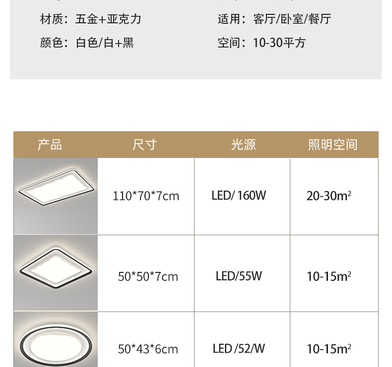 500*500*70mm/55W/黑色/方/三色
