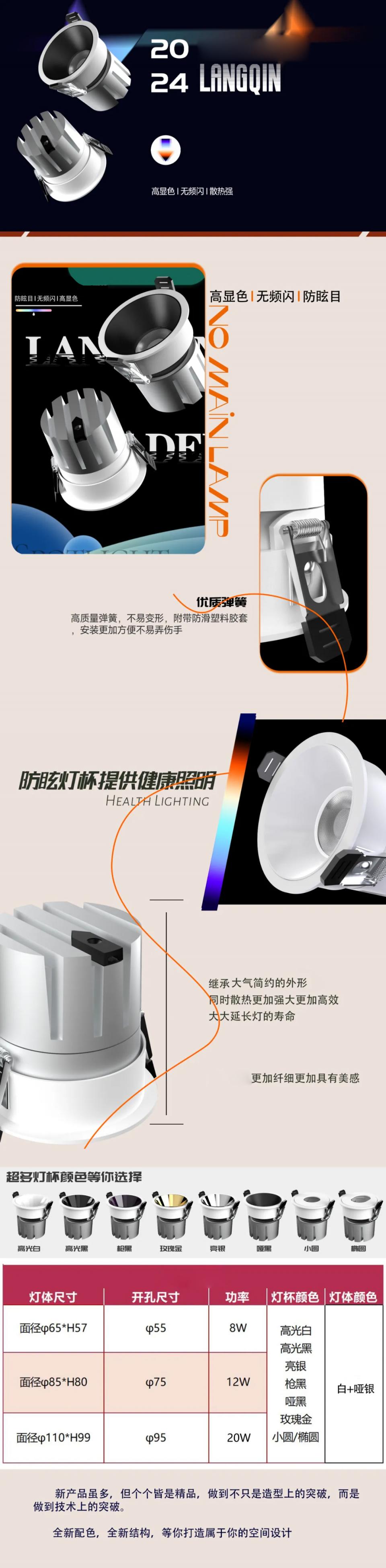 无主灯客厅照明cob防眩光射灯led轻奢天花灯家用嵌入式小圆孔浪琴射灯