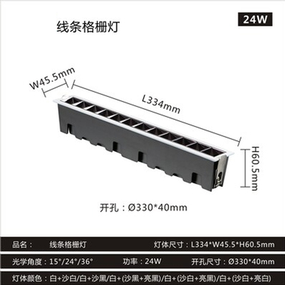 透镜款方形L334*45.5*60.5mm 12珠 开孔 330*40mm 24W 枪黑杯