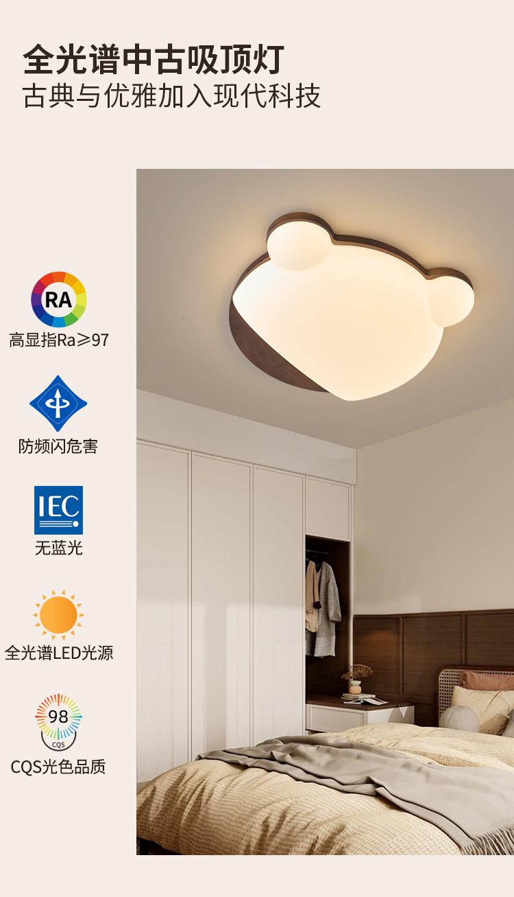 儿童小熊猫卧室吸顶灯2024年新款高端大气黑胡桃木实木简约新中式大厅主灯具