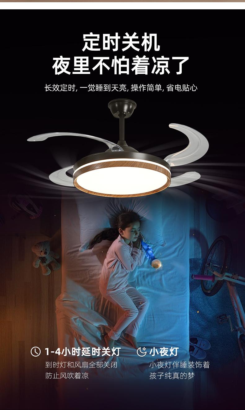 风扇灯胡桃木色吊扇灯北欧客厅灯卧室灯餐厅新中式