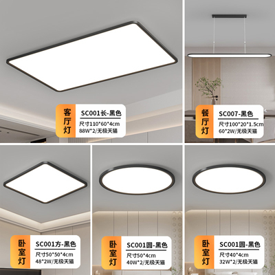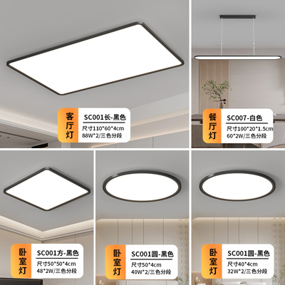 客厅灯超薄led护眼吸顶灯长方形现代简约大气2024新款套装组合001