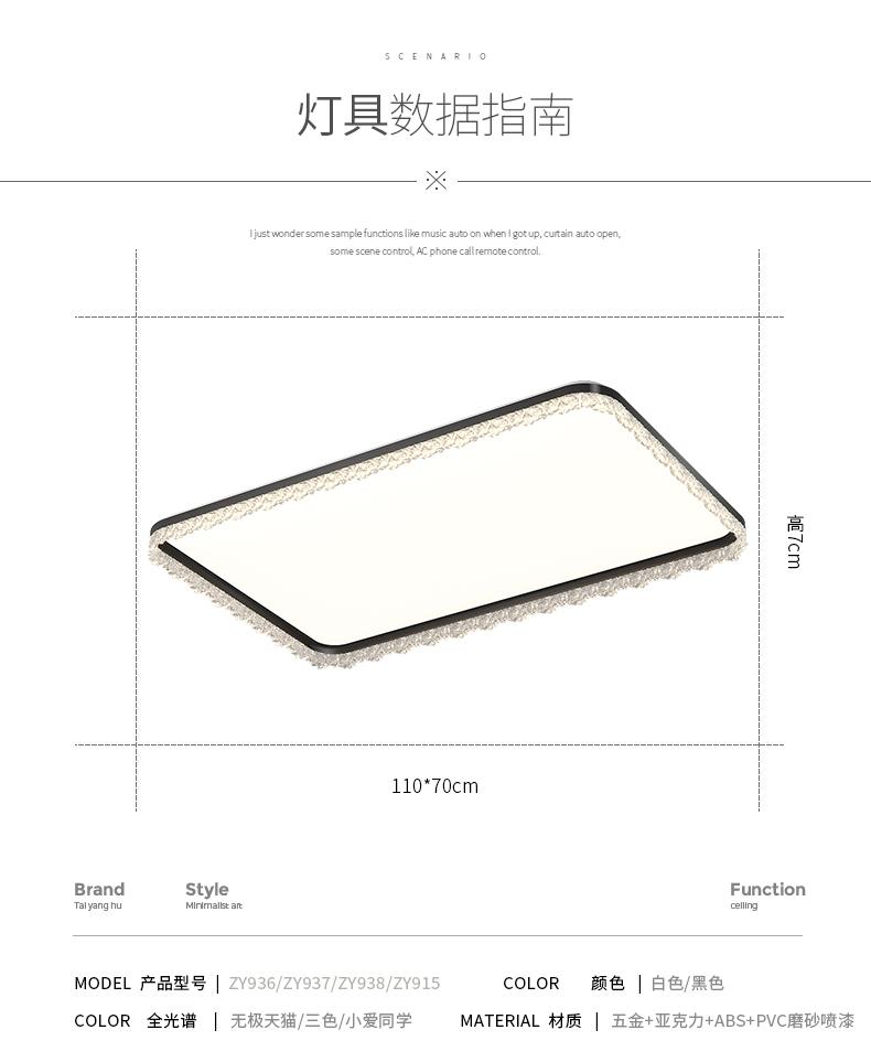 【米家全屋智能】卧室吸顶灯现代简约大气新款极简LZ-ZY936/白色/圆黑色/米家智能
