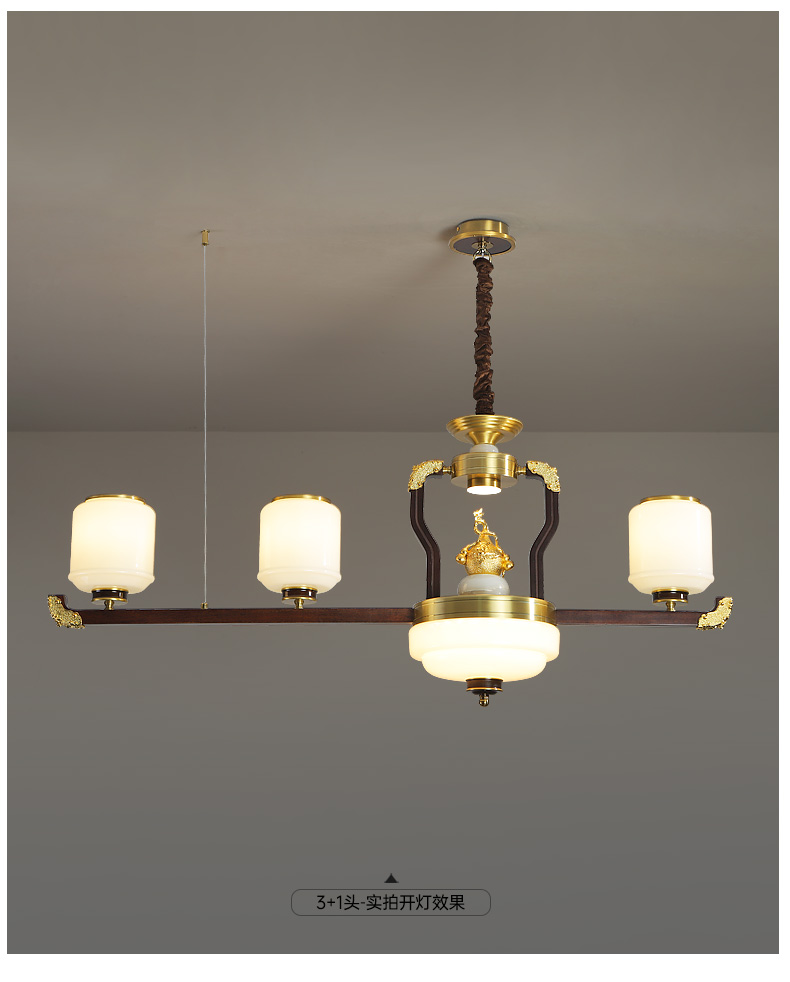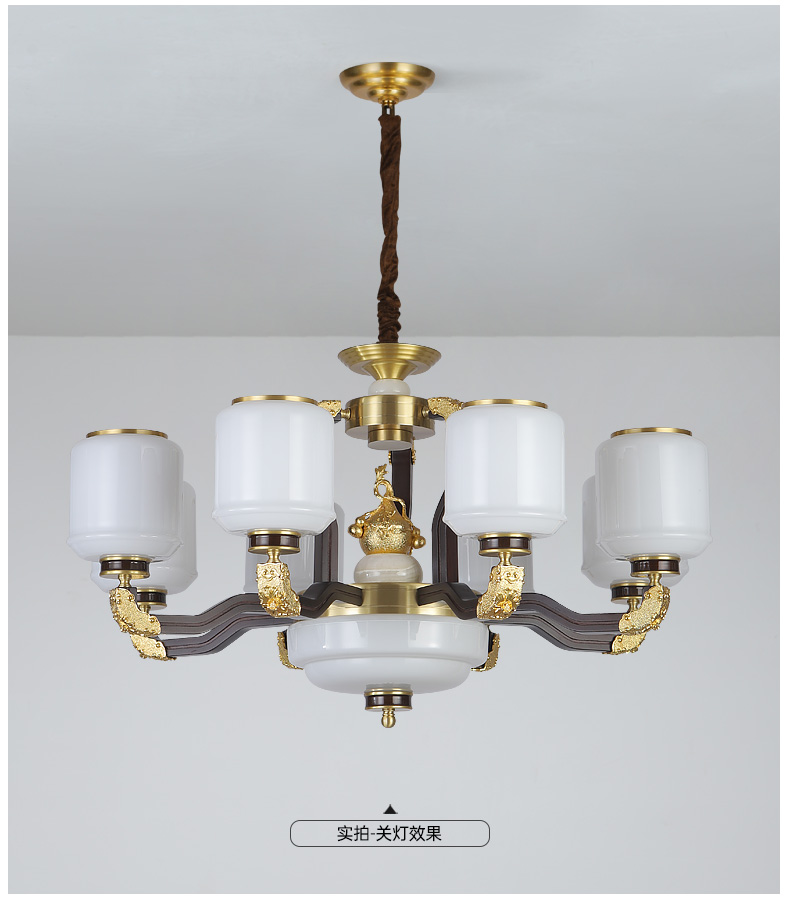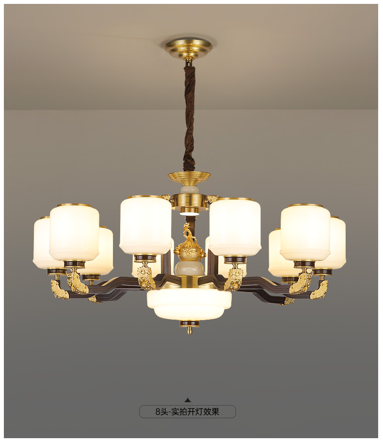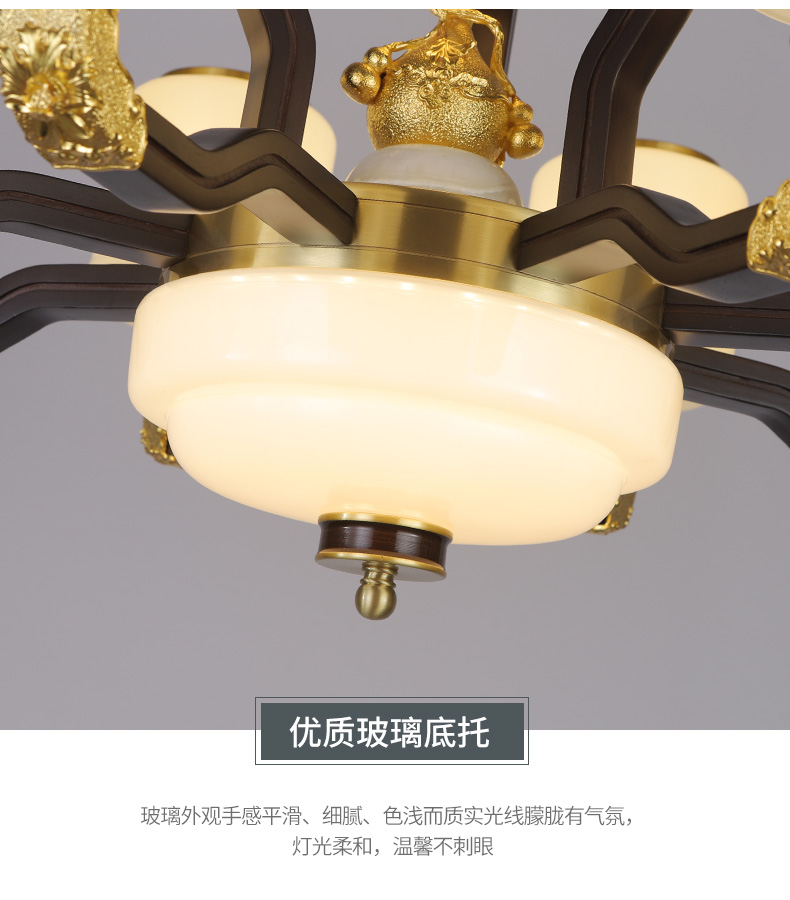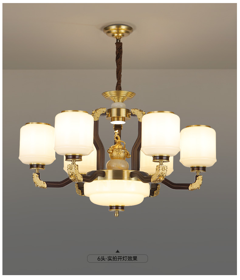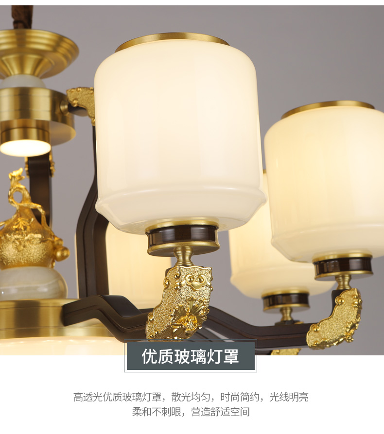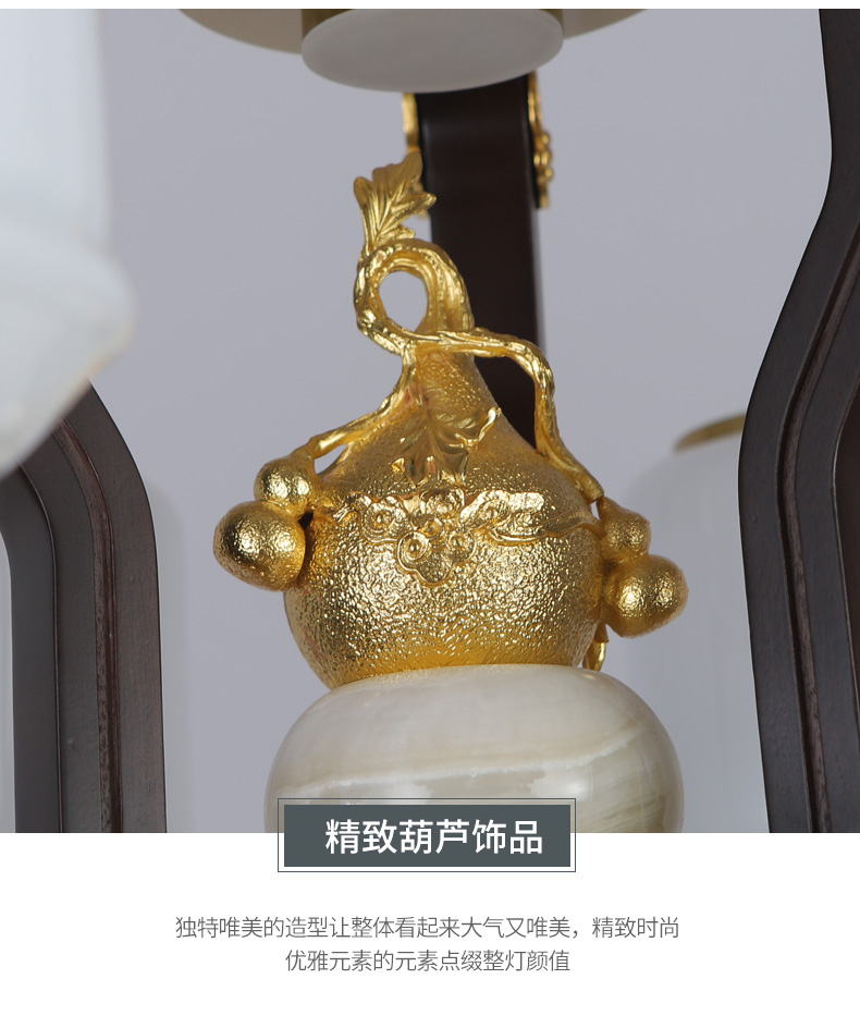 合金铜+玉石+ 胡桃木+玻璃灯罩