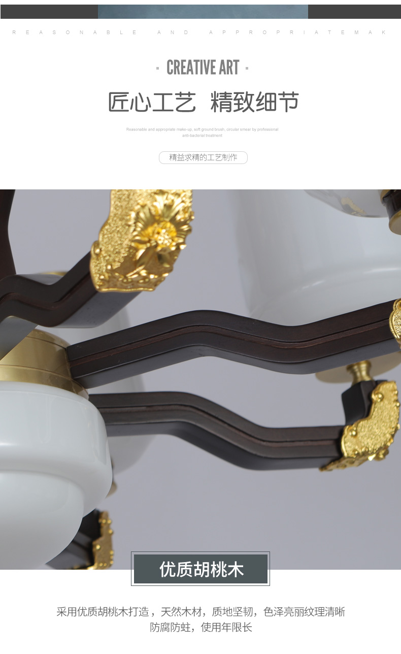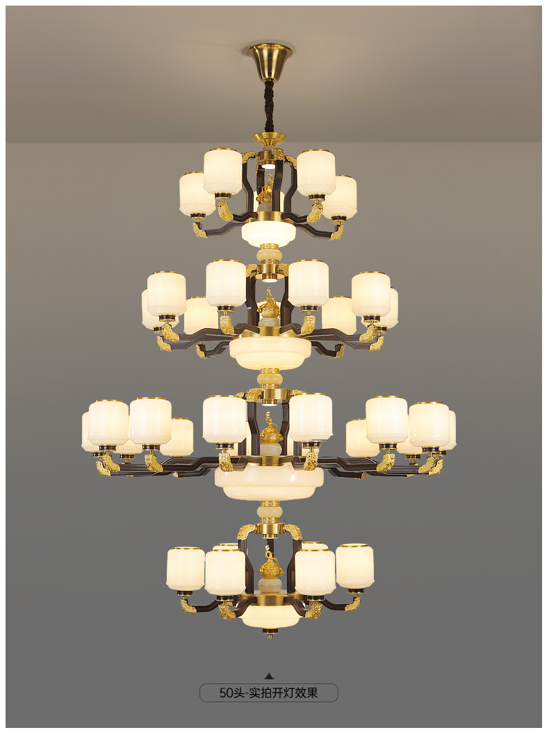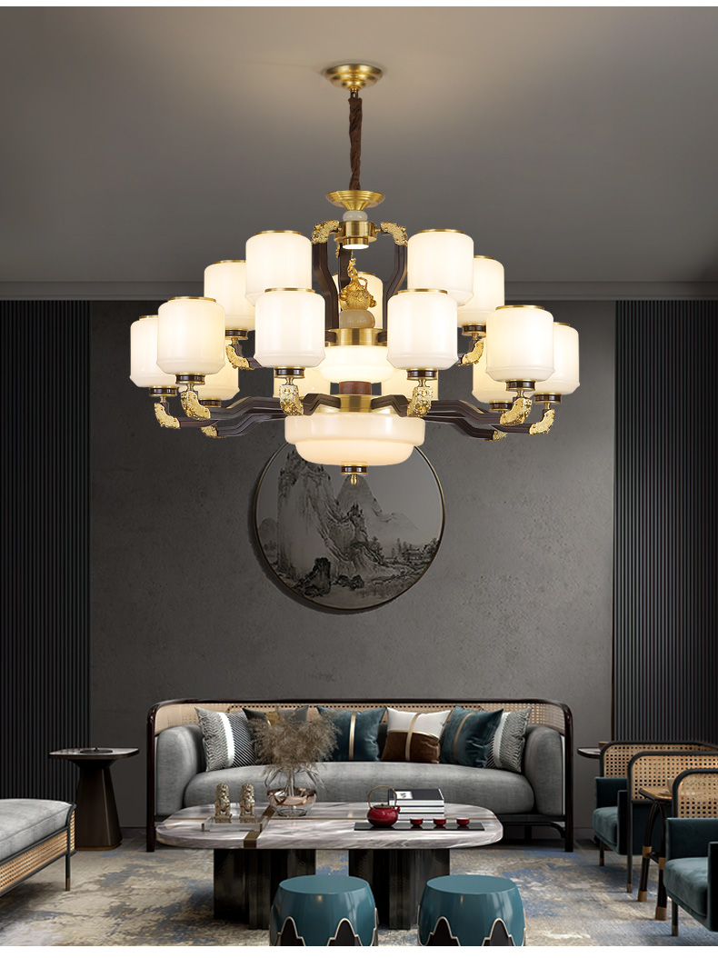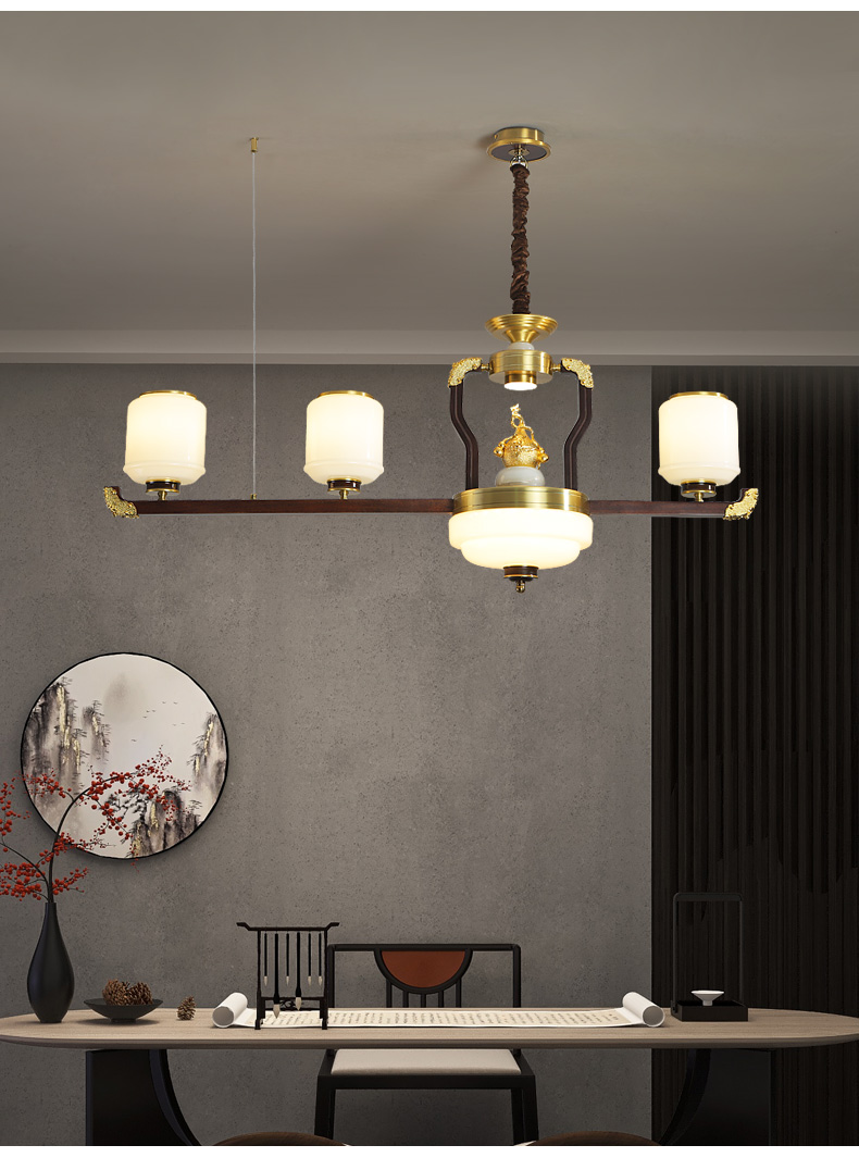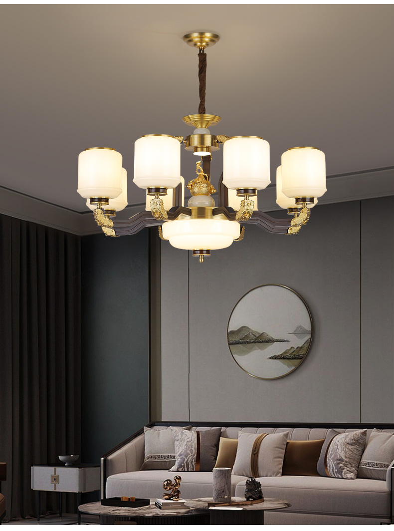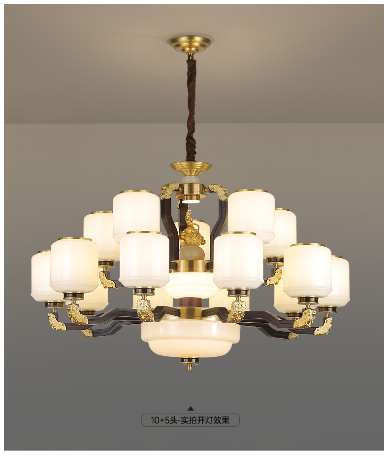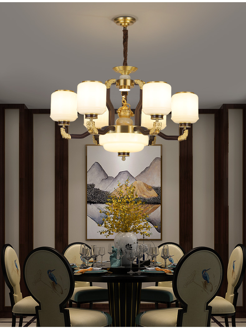 合金铜+玉石+ 胡桃木+玻璃灯罩