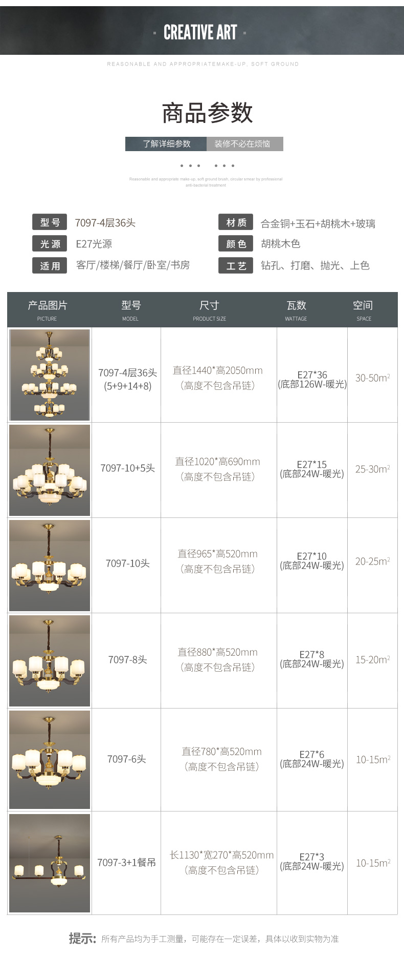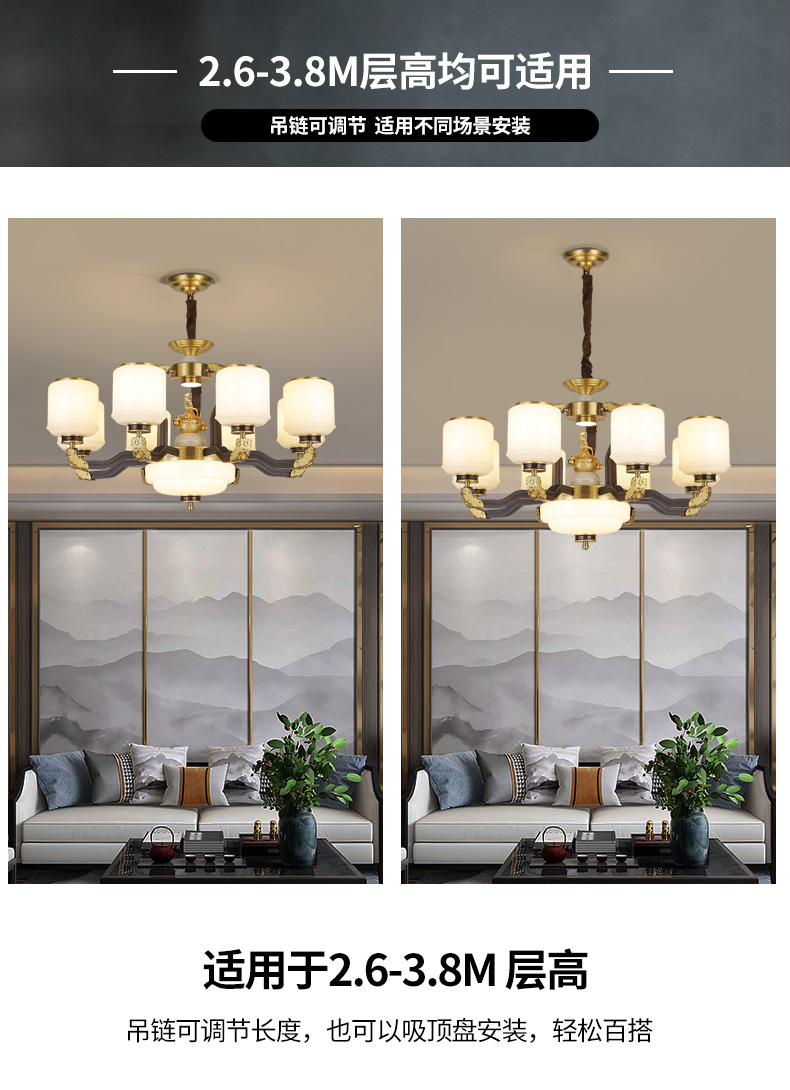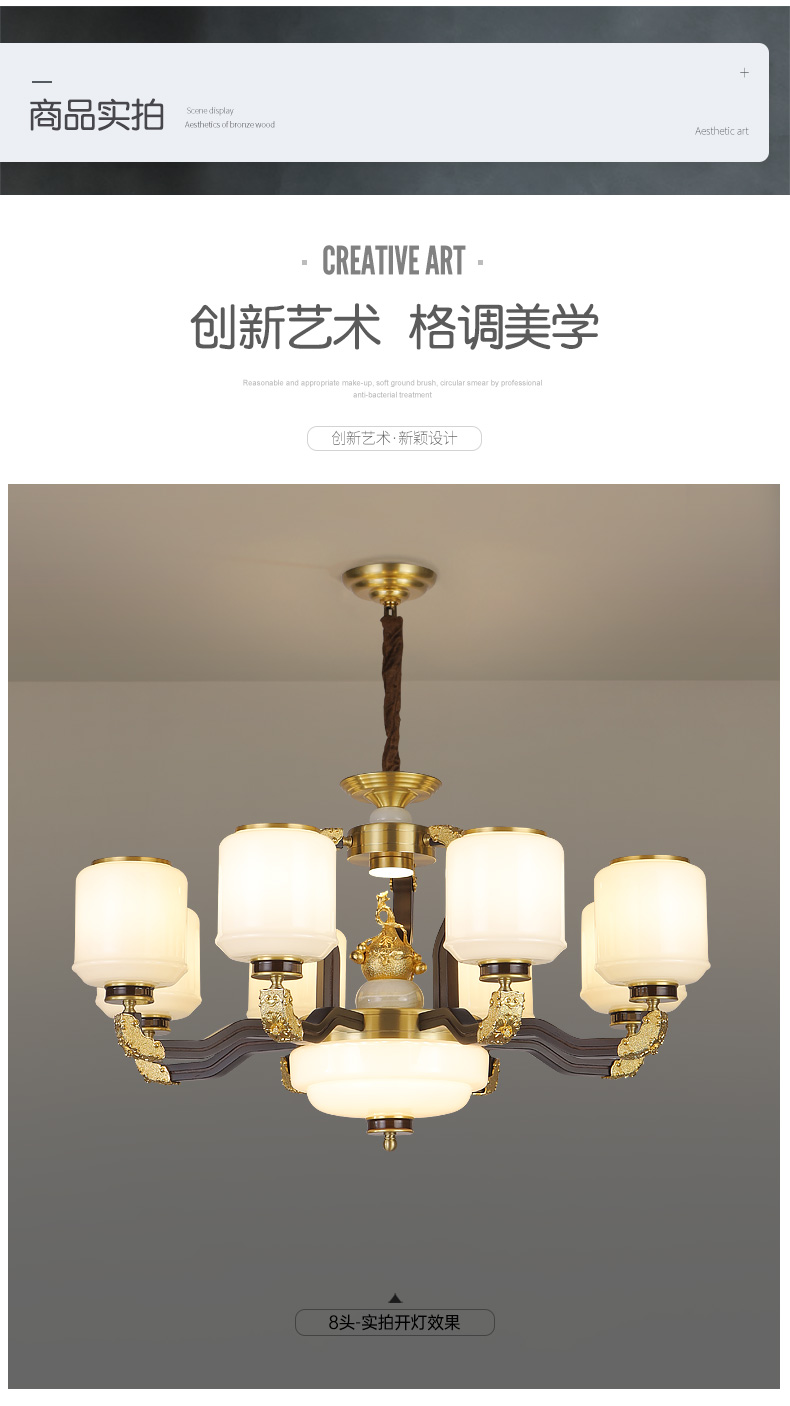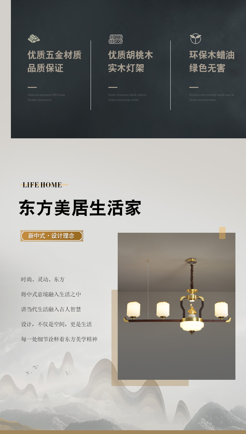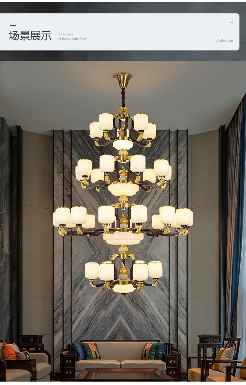 合金铜+玉石+ 胡桃木+玻璃灯罩