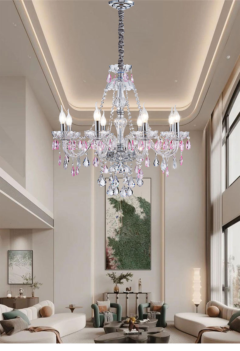 简约浪漫法式紫色水晶灯大厅客厅装饰吊灯D1861