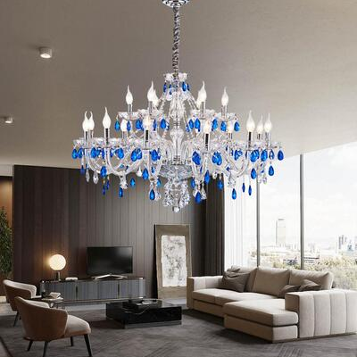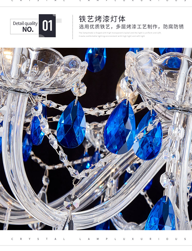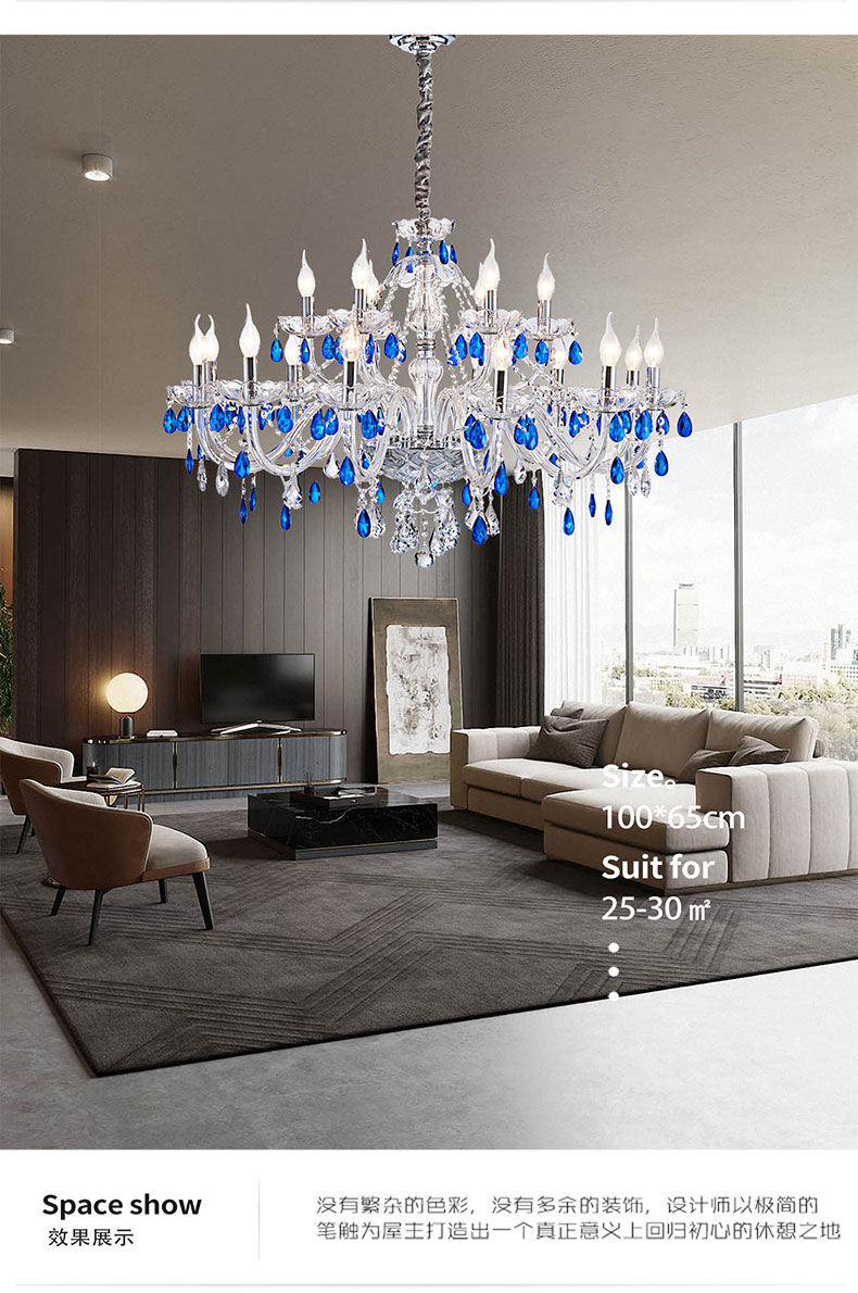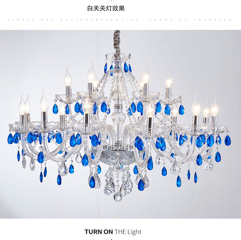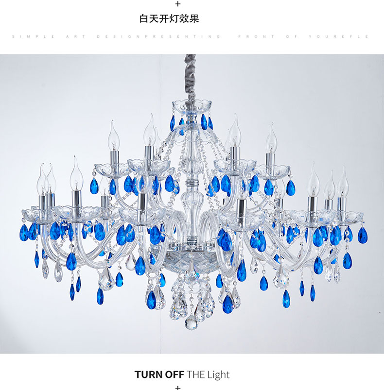 简约浪漫法式蓝色水晶灯卧室客厅装饰吊灯D1861