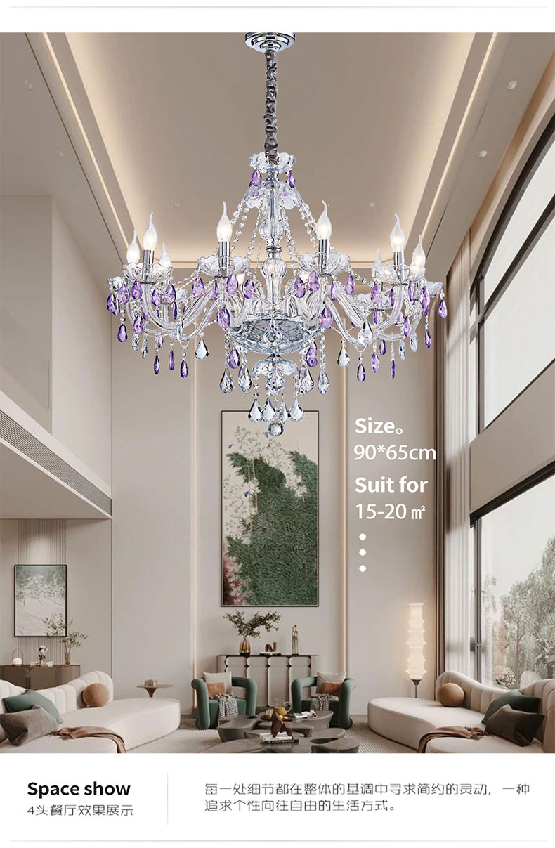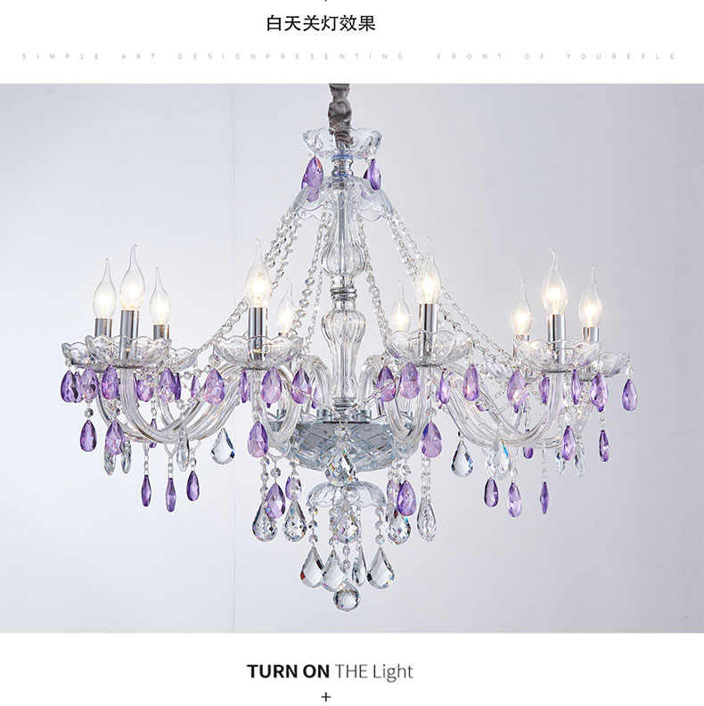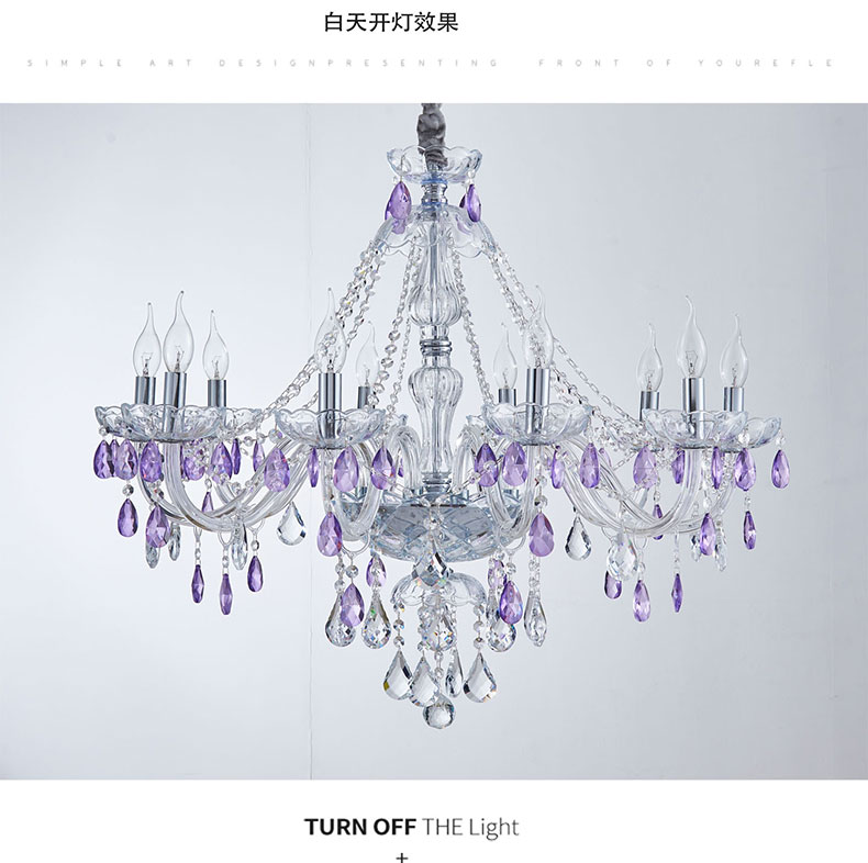 简约浪漫法式紫色水晶灯大厅客厅装饰吊灯D1861