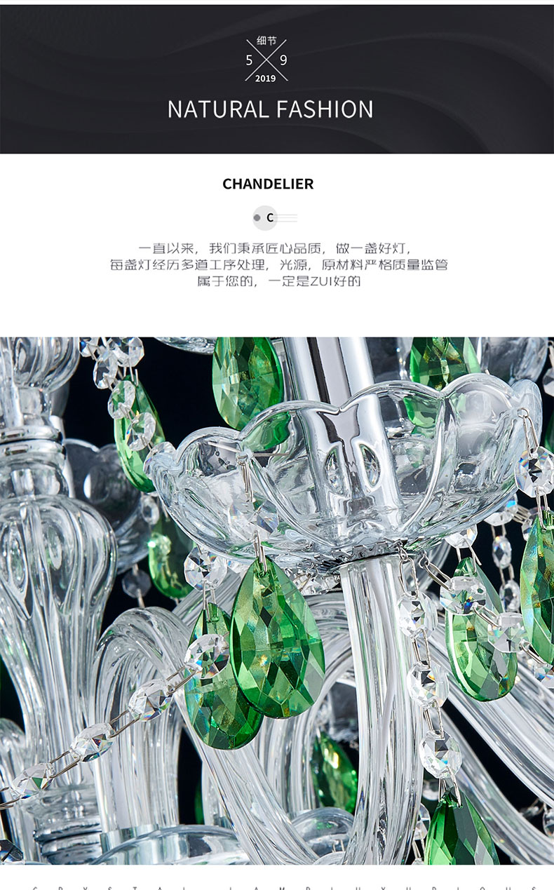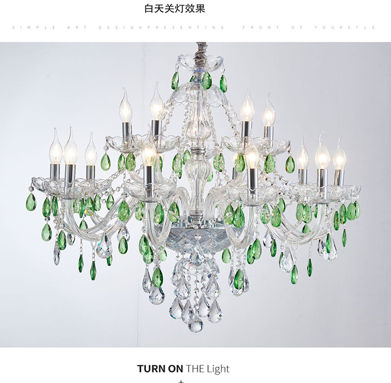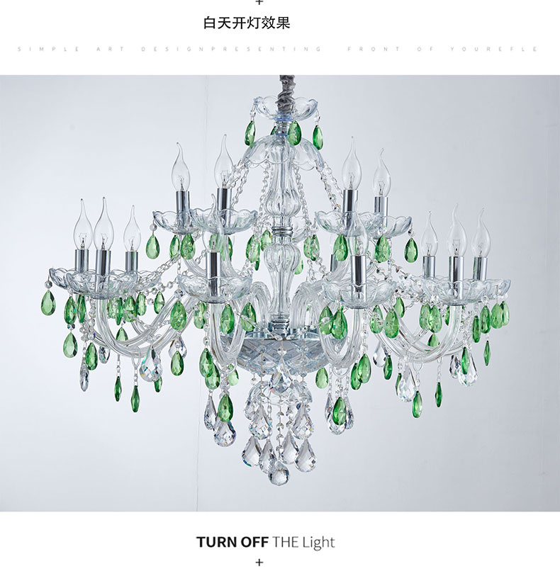 简约浪漫法式绿色水晶灯大厅客厅装饰吊灯D1861
