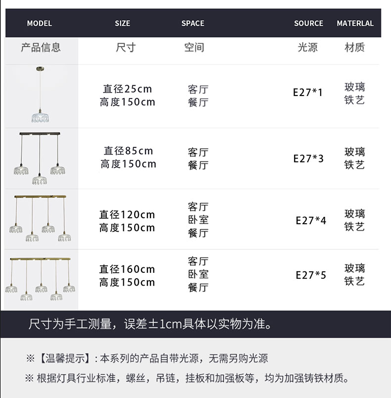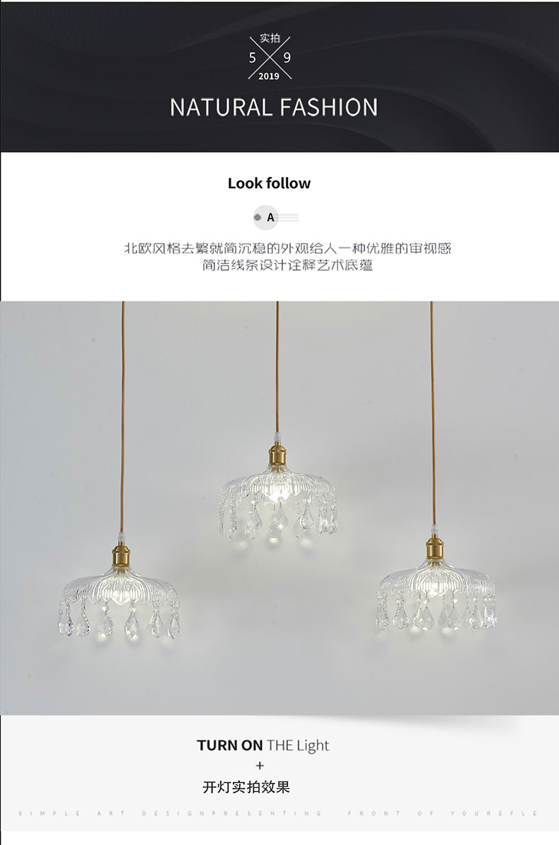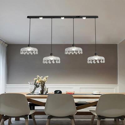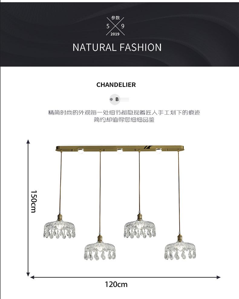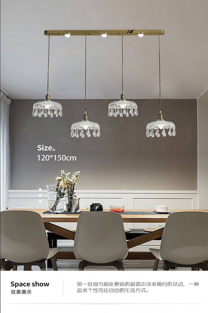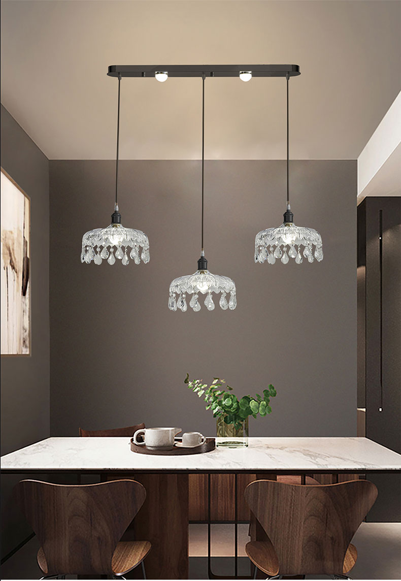 D6002-4餐吊 铬色底盘(清光凤尾玻璃)