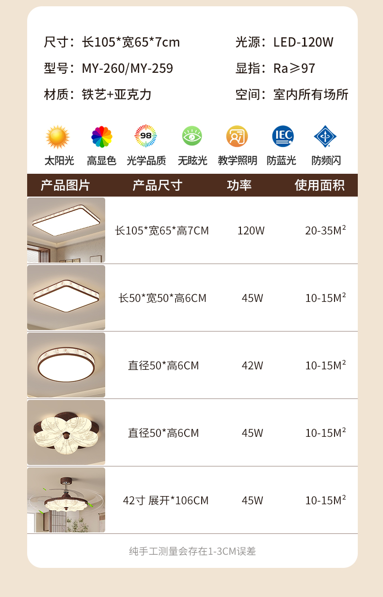 500*160mm/45W/木纹色/三色