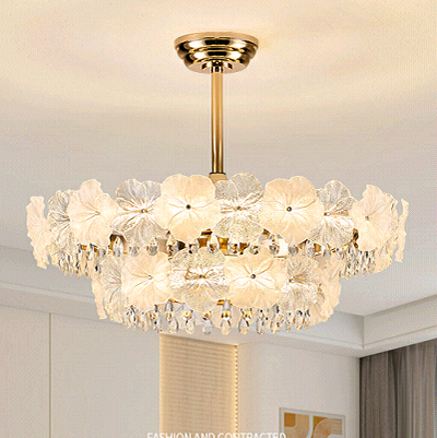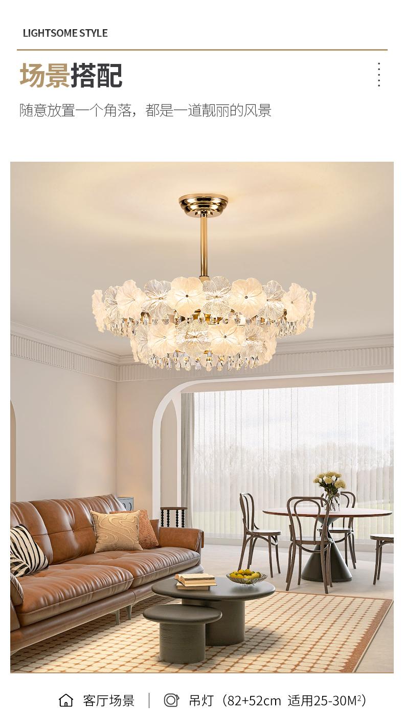 法式奶油风客厅风扇灯轻奢餐厅吊灯高级感花朵卧室吸顶灯HY-8601/820+520