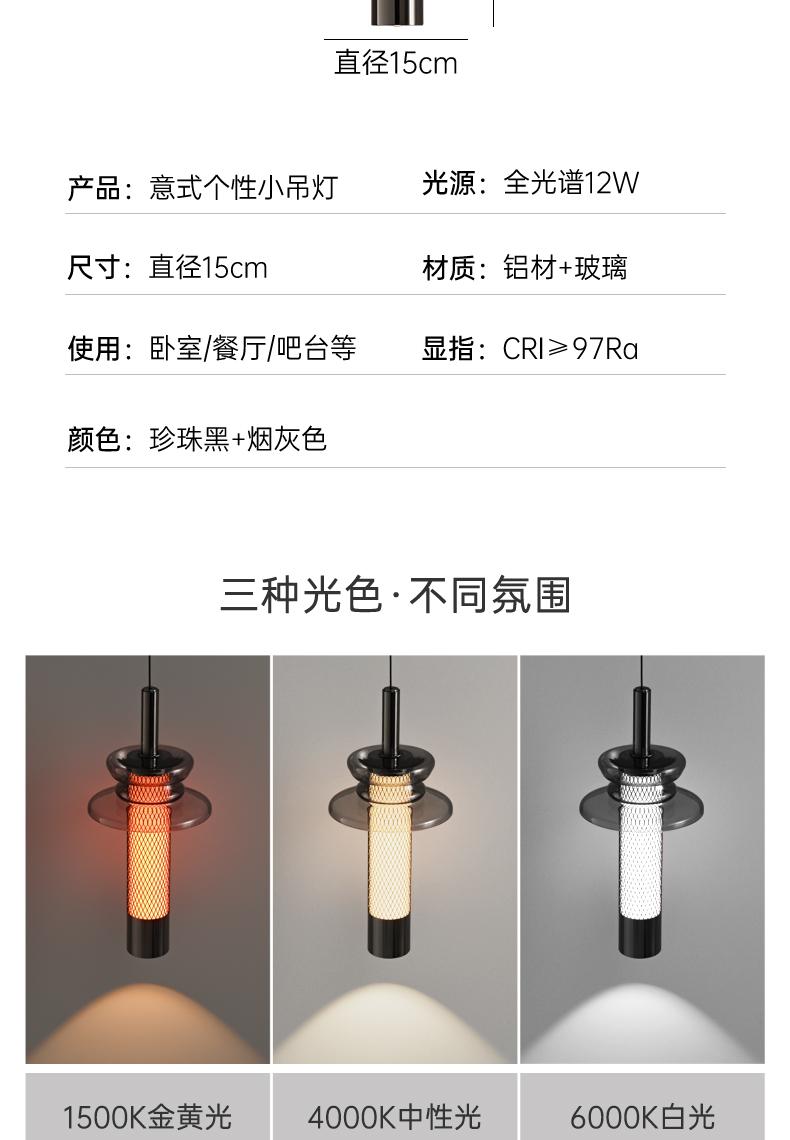 意式个性烟灰色光学玻璃灯罩小吊灯X007