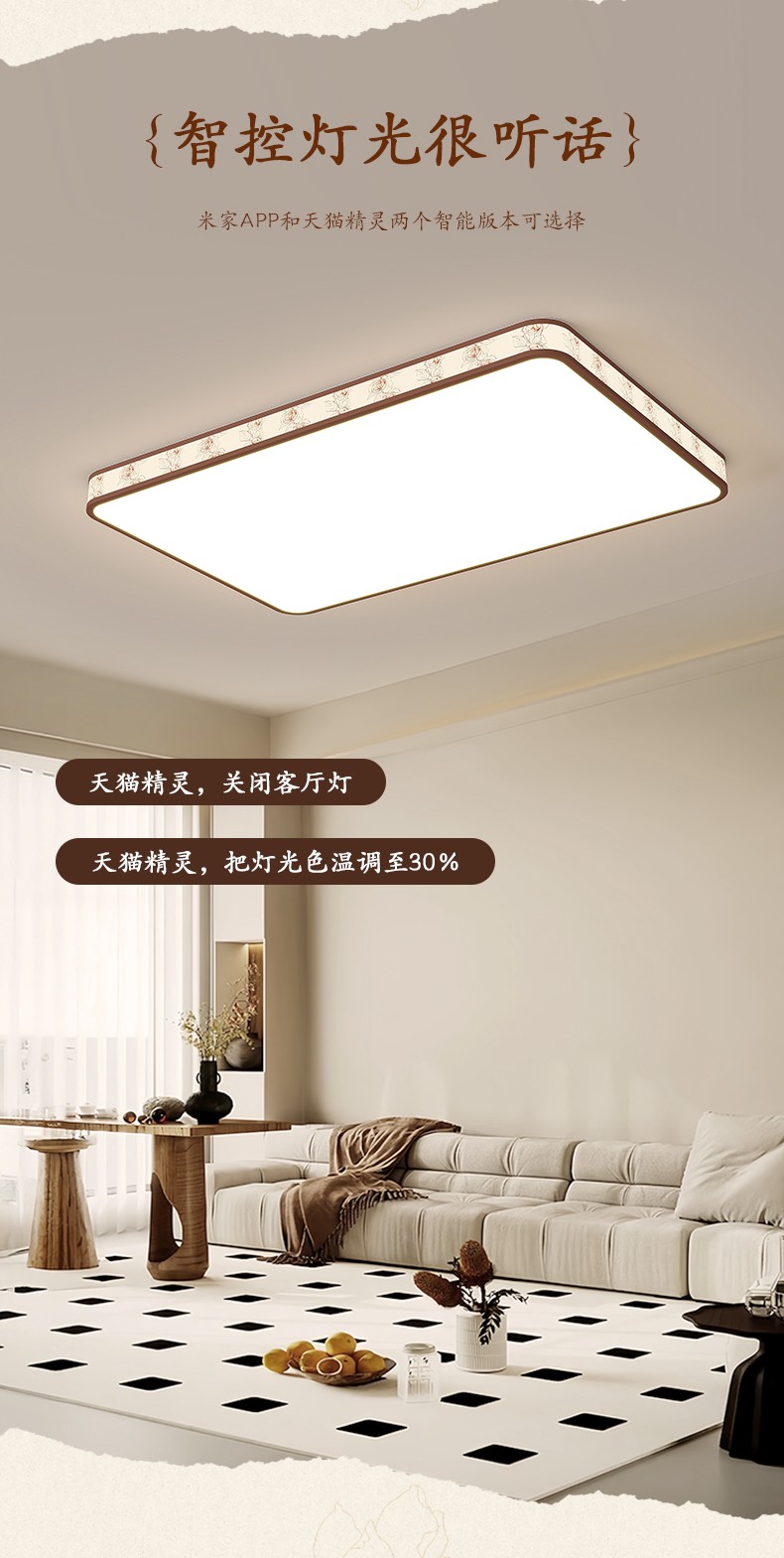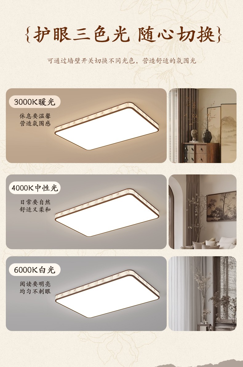 三室两厅/木纹色/三色变光(风扇灯默认离线)