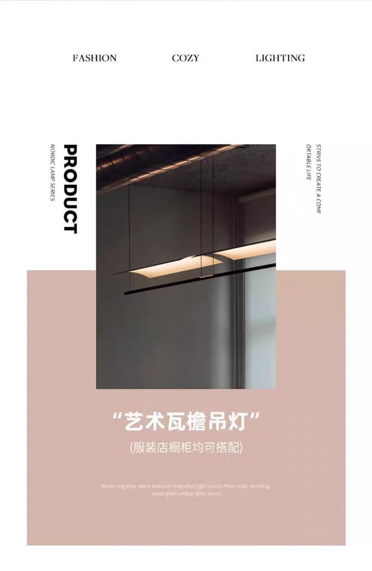 后现代艺术新中式极简长条吊灯瓦檐/3P