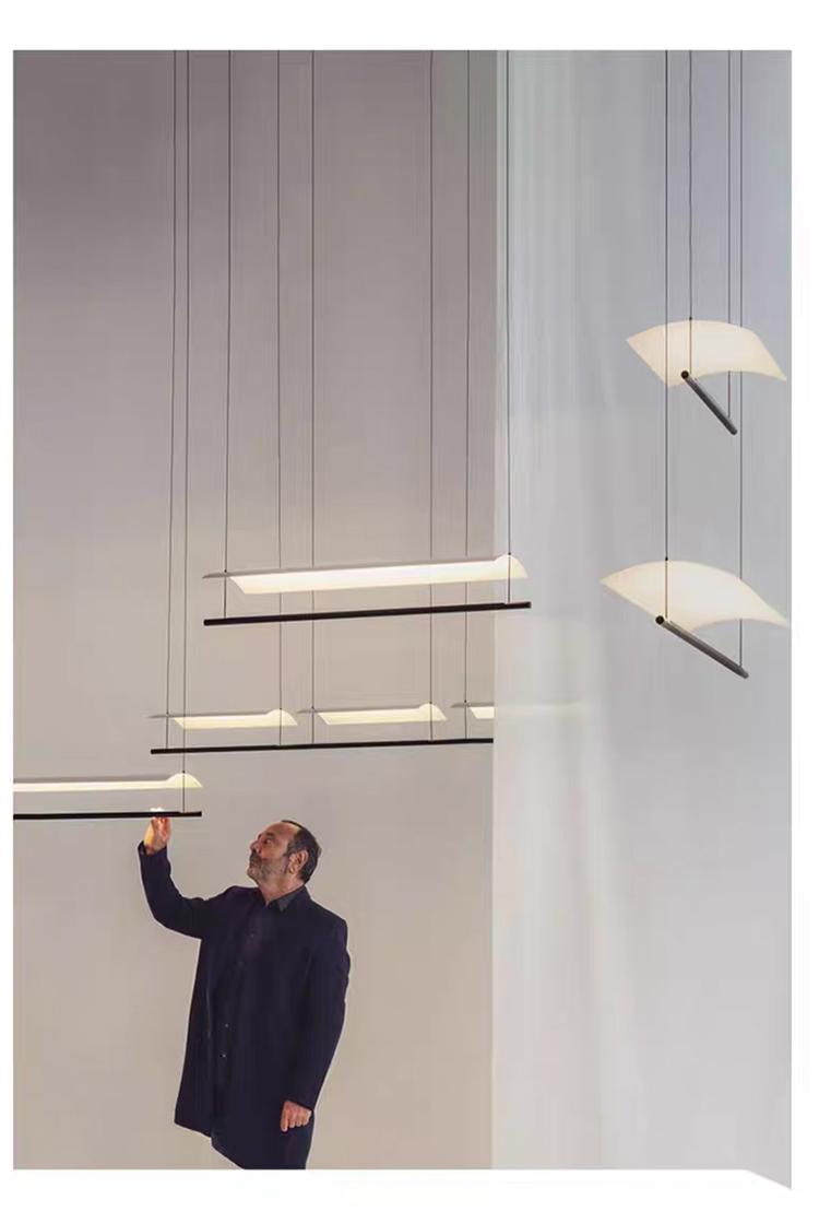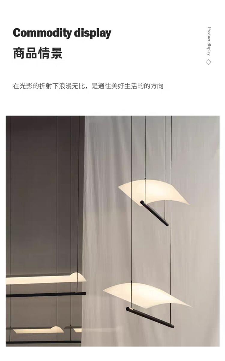 后现代艺术新中式极简长条吊灯瓦檐/2P