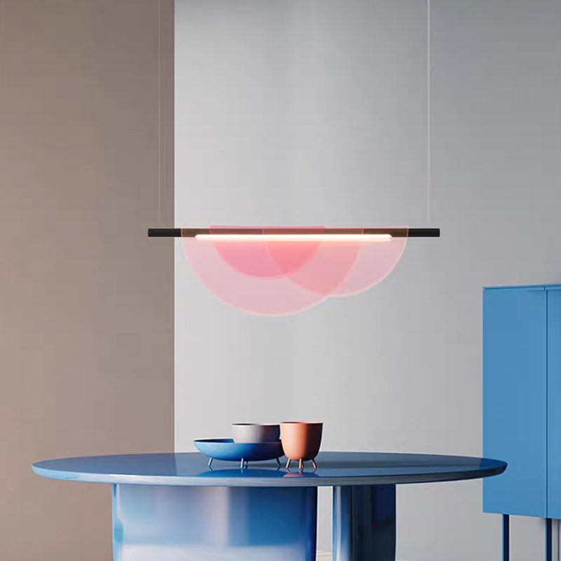 北欧后现代艺术创意彩色一字长条吊灯光影/粉