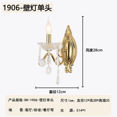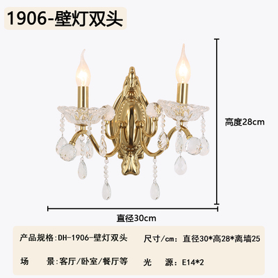 2026新款铁艺蜡烛管客厅设计水晶壁灯1906