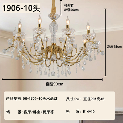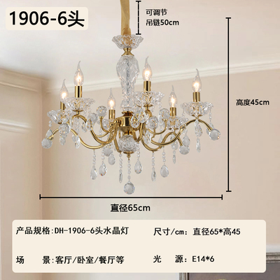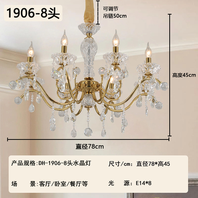 2026新款铁艺蜡烛管客厅设计水晶吊灯1906