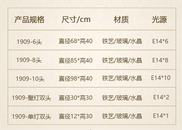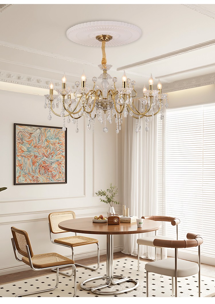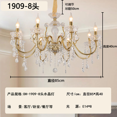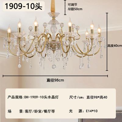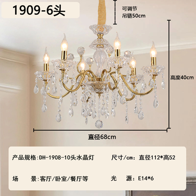 2026新款铁艺蜡烛管大厅卧室高级水晶吊灯1909