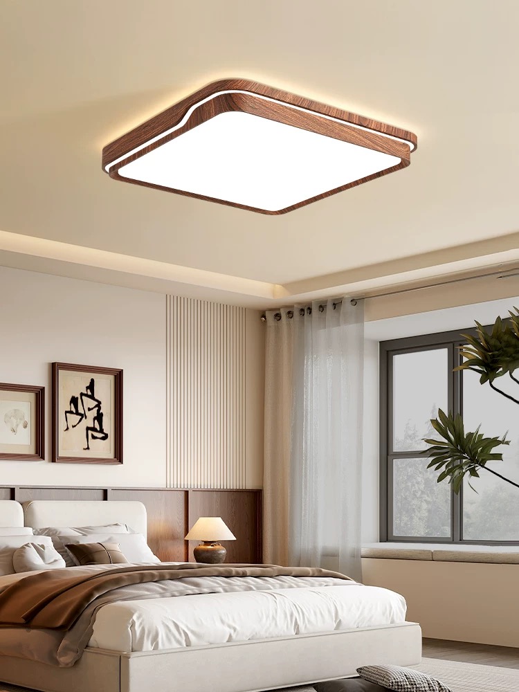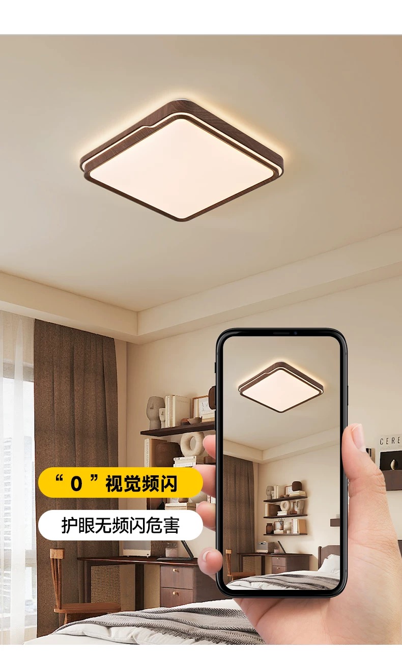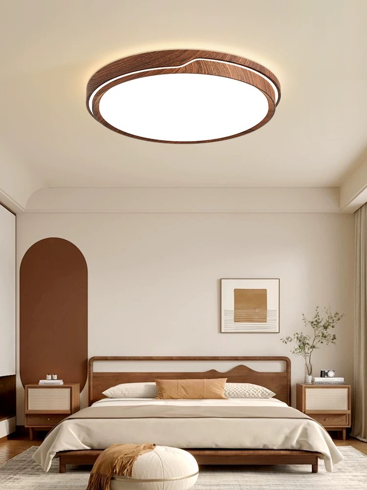 新款波浪客厅吸顶灯法式中古风胡桃木色全光谱卧室灯中山灯具848
