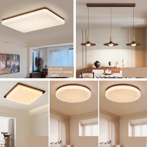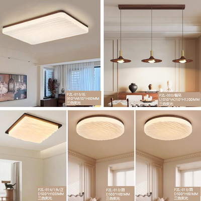 客厅灯吸顶灯创意胡桃木色卧室灯主灯护眼中古风侘寂风家装吸顶灯818