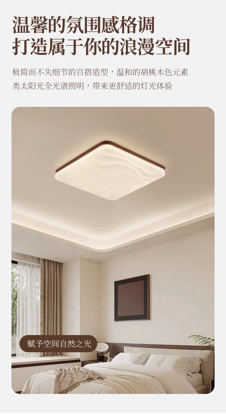 法式中古吸顶灯卧室灯复古美式胡桃木纹全光谱护眼书房轻奢风灯具827